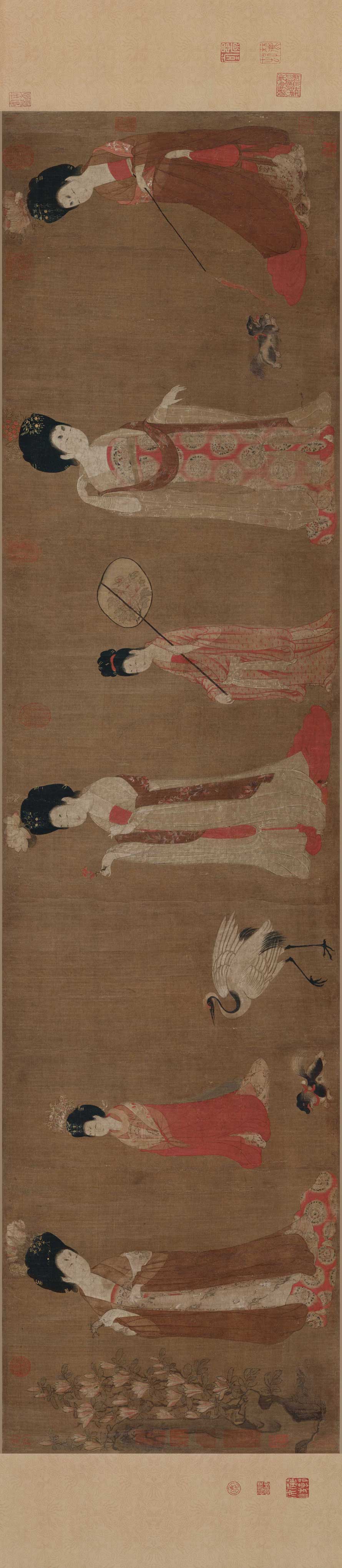 648 周昉《簪花仕女图》欣赏 《簪花仕女图》传为唐代周昉绘制的一幅粗绢本设色画。作品现藏于辽宁省博物馆。《簪花仕女图》是周昉贵族人物画风格的代表。同时也体现出贵族仕女养尊处优、无所事事、游戏于花蝶鹤犬之间的生活情态。周肪 簪花仕女.. 2024-06-14 08:12
