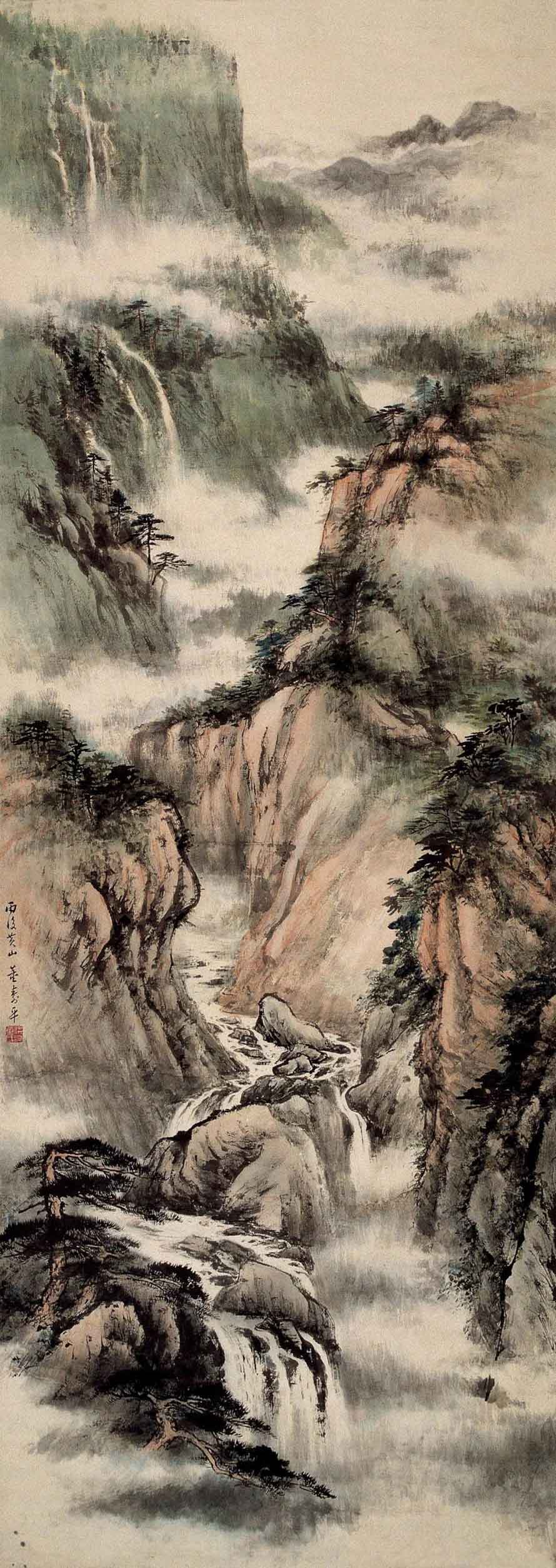 463 董寿平作品《雨后黄山》欣赏 1954年,董寿平赴黄山、富春江写生,黄山给他以深刻的启迪,此后山水画多以黄山为师,《雨后黄山》即是其一。画面以一溪清流为脉,使两岸山崖开合有致;数段云霞飘动在山间,使画面有虚实相生之趣;墨绿基调中的几处.. 2024-10-07 08:14