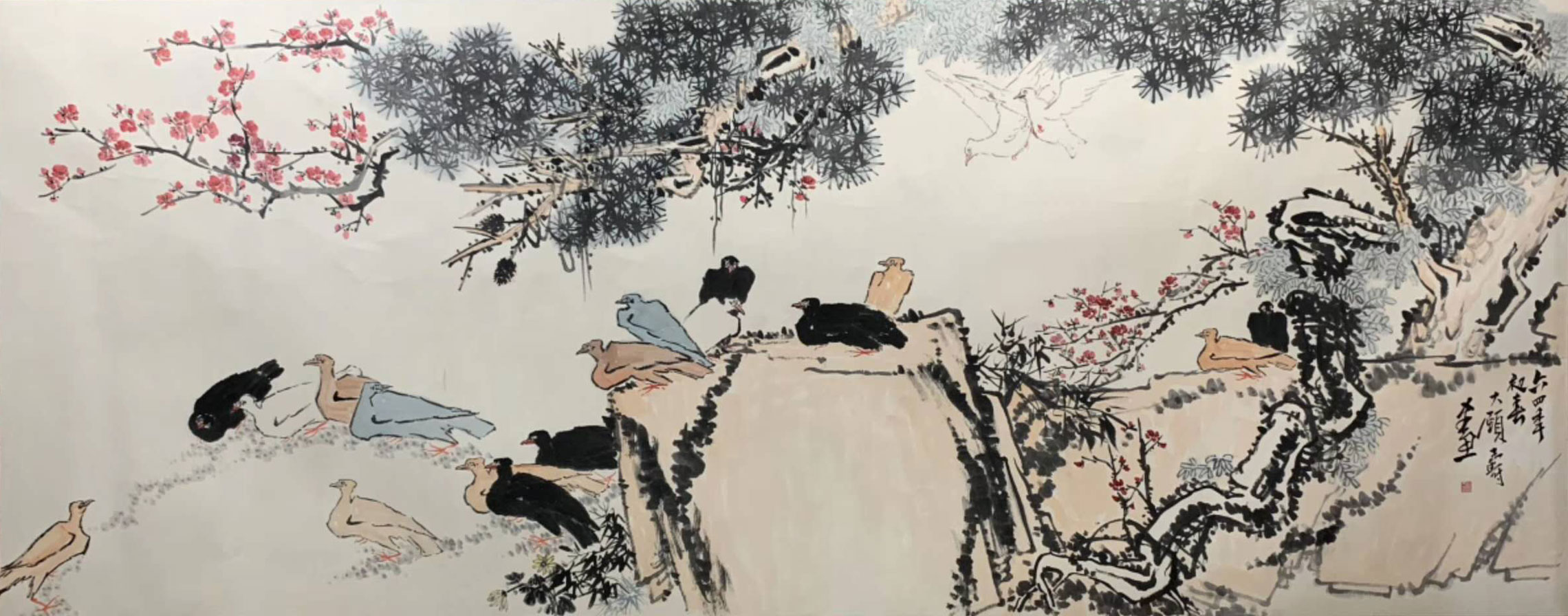 331 潘天寿《松梅群鸽图》,殿堂级巨制! 2018年北京秋拍中,潘天寿巨制《无限风光》以2.875亿元成交,刷新其作品拍卖纪录。2019年北京秋拍中,潘天寿的丈二巨制《初晴》以2.058亿成交。2022年10月,潘天寿的丈二巨制《松石雄鹰图》以2.185亿成交。下面从庋.. 2024-06-18 08:16