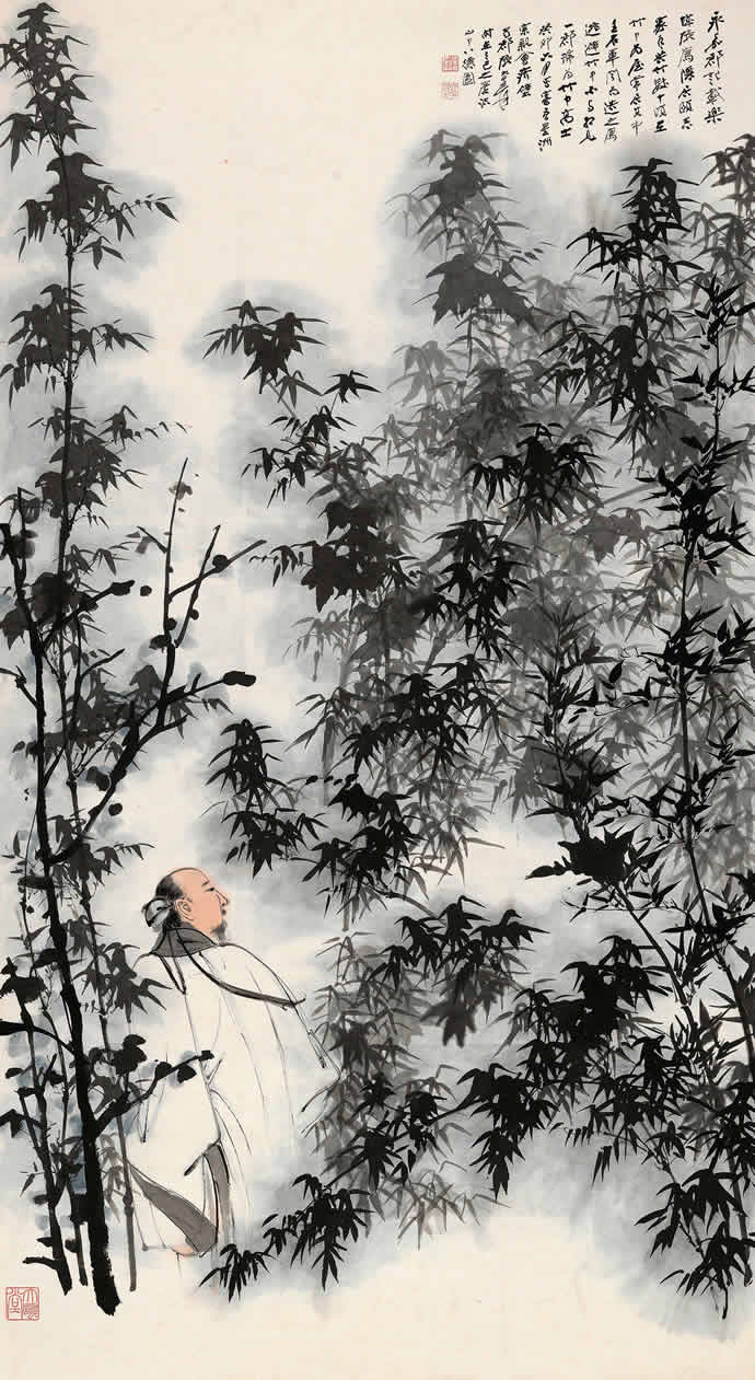 386 张大千国画作品《竹林高士图》 核心提示:张大千是二十世纪中国画坛最具传奇色彩的国画大师,无论是绘画、书法、篆刻、诗词都无所不通。早期专心研习古人书画,特别在山水画方面卓有成就。后旅居海外,画风工写结合,重彩、水墨融为一体,尤其是泼.. 2024-12-28 08:18