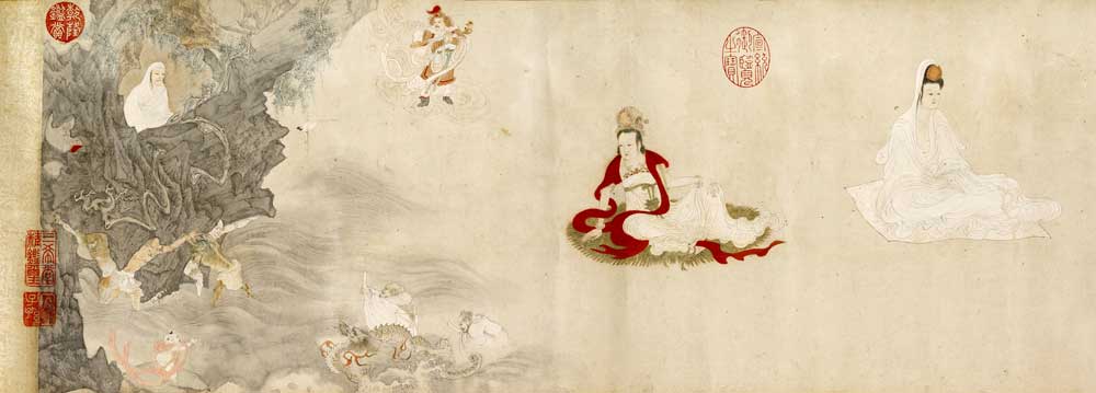 502 丁云鹏《五相观音图》图赏 丁云鹏《五相观音图》纸本设色,28.58 x561.34cm,美国纳尔逊-艾金斯艺术博物馆藏。画家画出了观音的五种相貌,但都是高髻白衣,面相慈善,或坐,或立,或手执花篮,都为委婉女子形象,但最后一相画家笔下的观音是位.. 2024-07-23 08:16