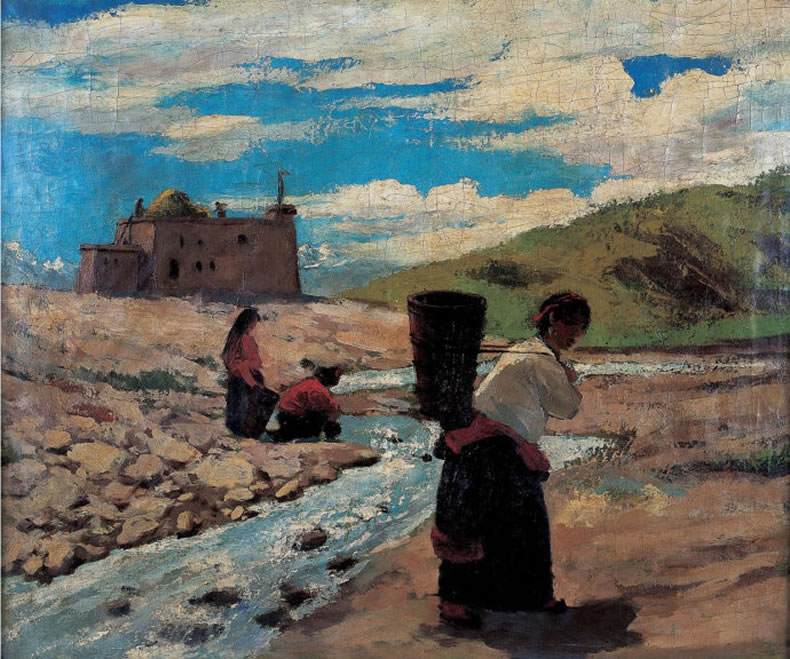 244 吴作人《藏女负水》赏析 吴作人在经过两年的中国西部之行后,在接触到高原人民生活和敦煌石窟艺术后,其艺术风格发生了巨大变化——大西北特有的高原明朗色彩,使他一改由西欧学来的那种深沉、忧郁的色调,呈现出清明、亮丽的风格,同时他结.. 2025-01-07 08:14