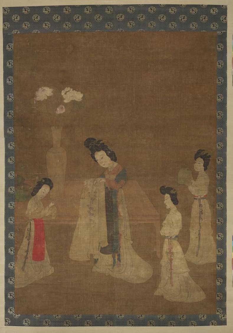300 陈洪绶《戏婴图》 欣赏 陈洪绶《戏婴图》除太湖石用较粗的笔勾画,玲珑剔透,轮廓线多呈弧状,尖利而挺拔,佛像及人物全用细劲的线条画出。层次细腻,风格典雅,设色明丽温和,技法纯熟,神形兼备,富有情趣。△ 明 陈洪绶 戏婴图 纸本1506.. 2024-07-22 08:12