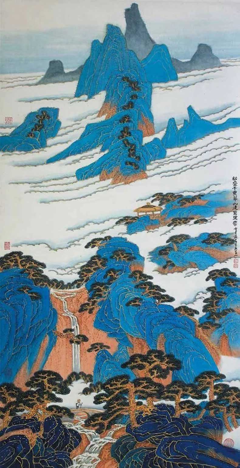 601 刘海粟《黄山山上万峰奇》,丈二钜制 刘海粟与张大千是我国泼彩山水画史上声名显赫、影响最大的两位画家。刘海粟先生在泼墨泼彩中,除了取法中国古人,也吸收了后印象派代表塞尚、梵高,以及野兽派代表马蒂斯等西方现代艺术家的绘画元素,结合了中国水墨.. 2024-08-03 08:16