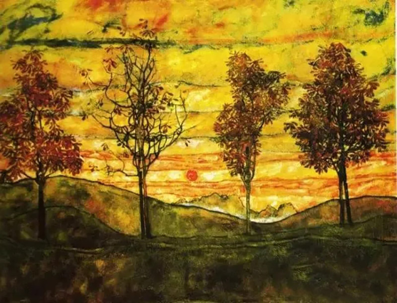 442 席勒作品《四棵树》欣赏 埃贡·席勒(1890~1918),20世纪初奥地利绘画巨子,表现主义画家,维也纳分离派的重要代表。1890年出生于奥地利图尔恩,1906年16岁的席勒就读于维也纳艺术工商学校,1908年,席勒在克洛斯特新堡举办了第一场展览。.. 2024-10-31 08:21