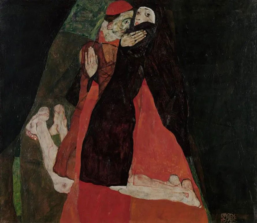 355 埃贡·席勒《红衣主教和修女》欣赏 埃贡·席勒(1890-1918)是20世纪初奥地利最重要的艺术家之一,以其极具个性的风格及独特的情感和性格表达方式而闻名于世。他的作品《红衣主教和修女》描绘了一对宛如情侣般的男性主教和女修士,作为一幅充满争议性.. 2024-10-04 08:11