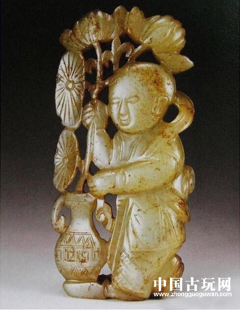 809 宋辽金时期古玉的特征 宋代图案纹饰多用"米"字纹。辽金玉器逐步向多层次发展, 尤其在玉器制作中利用皮色巧雕最有特色。宋代玉雕童子头大、足小, 以及饰粗短阴纹, 八字眉, 直鼻,小口,心形发, 为宋早期标准纹饰。宋代白玉执莲童子一、玉料.. 2024-05-14 08:09