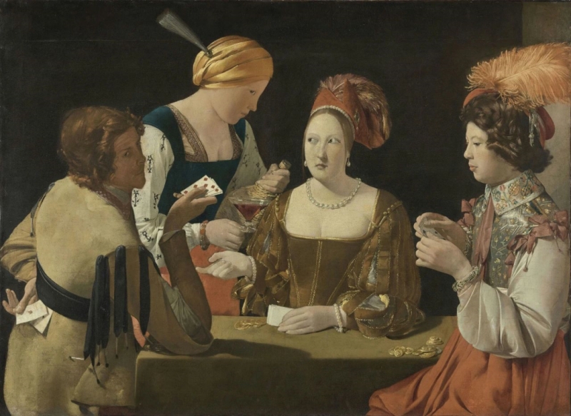 401 拉图尔《方片A的作弊者》欣赏 这幅《方片A的作弊者》是卢浮宫中拉图尔的作品里唯一的正常光线的作品,创作于1635年。宫廷女官和她的朋友通过侍酒女佣(手持一瓶酒站立的女人)用手势和眼神默默地传递着他们之间的作弊信息。在17世纪所有人看到画.. 2024-10-24 08:15