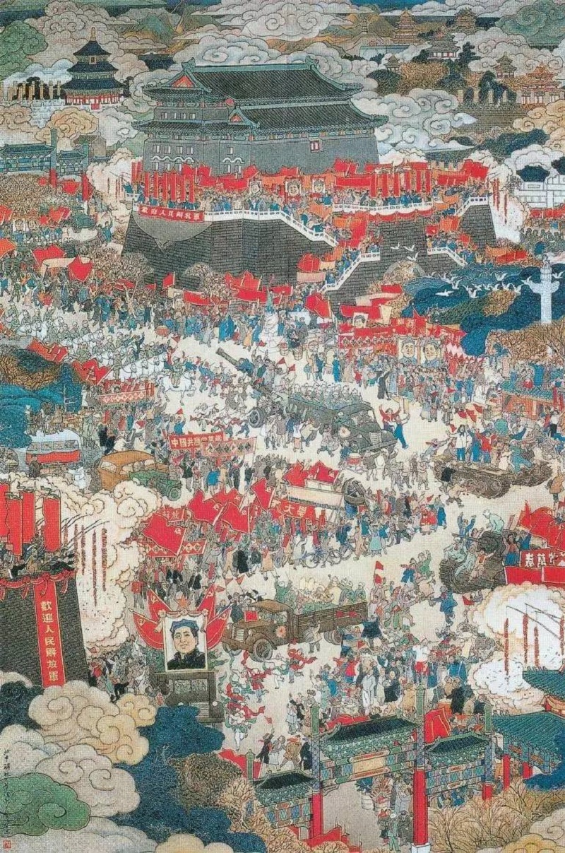 571 叶浅予作品《北平解放》欣赏 在《北平解放》中,叶浅予一反此前以写意为主的艺术风格,采用中国工笔重彩画的表现方式,创作了一件线条勾勒精细谨严,敷彩浓重红艳的艺术作品。△叶浅予作品《北平解放》作品描绘的是1949年,在广大群众的簇拥欢迎.. 2024-12-02 08:24