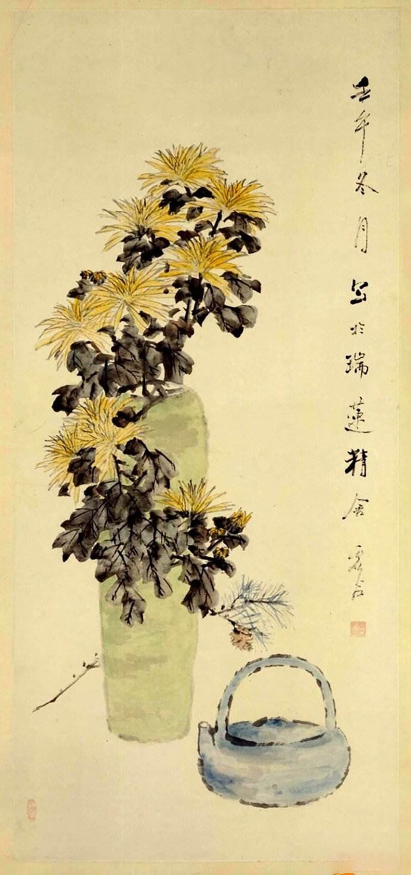 258 虚谷《瓶菊图》欣赏 虚谷(1824~1896),姓朱,名怀仁,出家为僧后以虚谷名,号紫阳山民、倦鹤等,祖籍安徽新安,寓居扬州、苏州、上海等地,卖画为生。能诗擅画,工于书法,尤以善绘瓜果鱼蔬、人物、山水等为人称道。喜用枯笔焦墨,具.. 2024-11-04 08:15