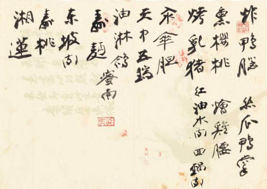 246 张大千手书菜单将在纽约佳士得拍卖 纽约佳士得将拍卖张大千手书菜单 系其厨师珍藏品【纽约佳士得将拍卖张大千手书菜单】国画大师张大千手书的多张精美菜单20日将在佳士得纽约拍卖行拍卖。这些菜单是纽约2018春季亚洲艺术展系列拍品的一部分,是张大千1.. 2024-12-30 08:24