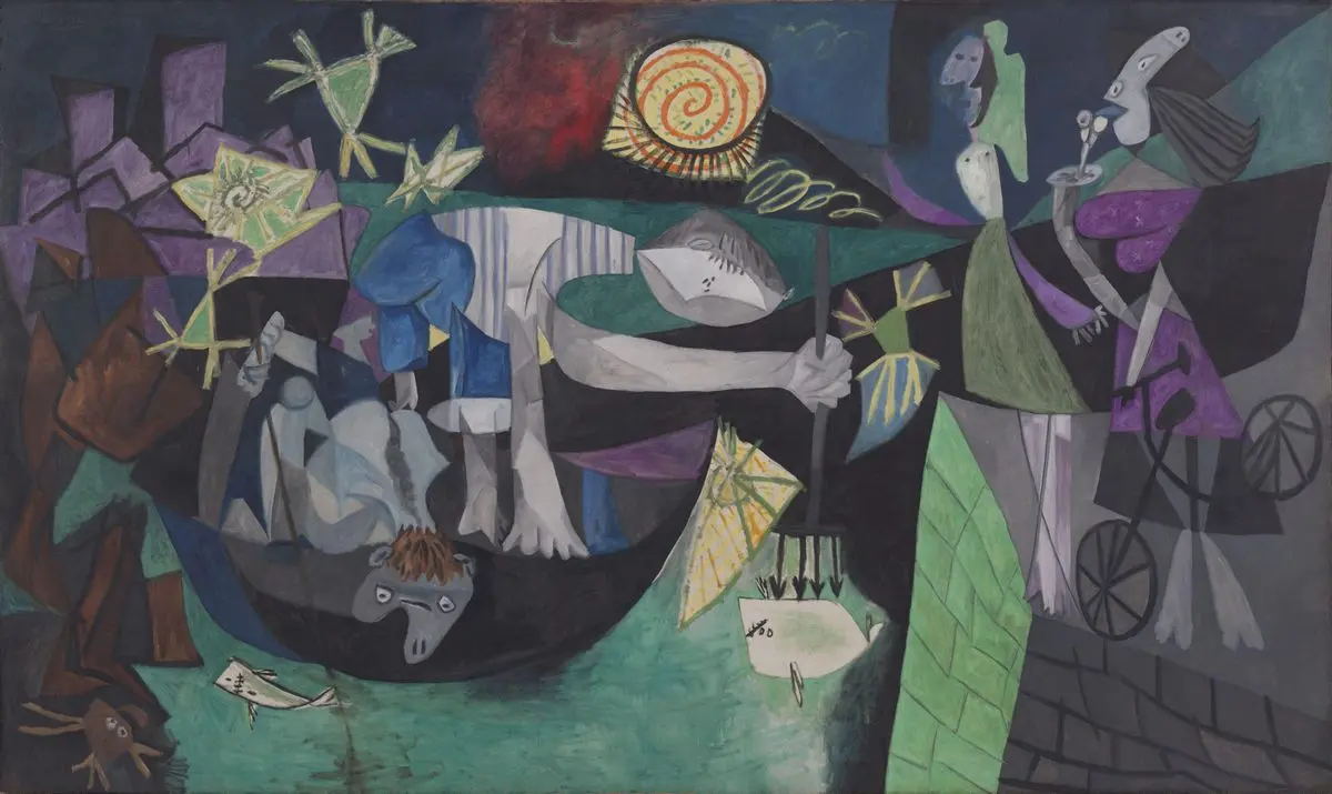 376 毕加索《昂蒂布夜钓》欣赏 《昂蒂布夜钓》是西班牙著名画家毕加索在1939年所绘制的一幅油画作品。这幅作品呈现了一个夜晚的钓鱼场景,画面中有一个人正在钓鱼,身后是一片宁静的湖泊。整个画面颜色丰富为主调,给人一种非常生动的感觉。在这幅.. 2024-09-26 08:17