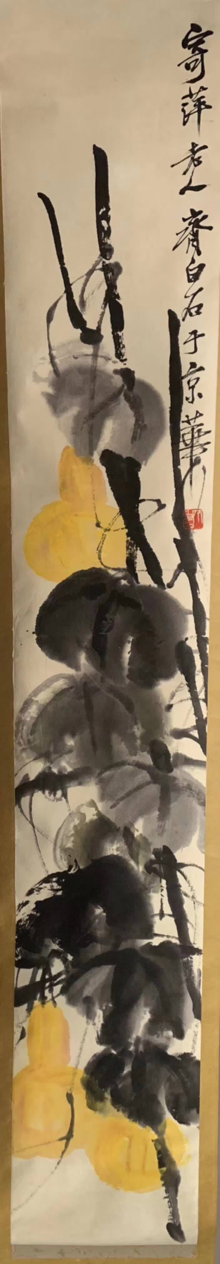 323 齐白石《葫芦图》,象牙轴头 葫芦,取其谐音以寓“福禄”,历代画家都喜欢用此谐音表达祝福。清末民国,齐白石(1863~1957)农民出身历经社会动荡,战乱繁起,对吉祥平安的吉愿比一般人更多,所以笔下时常会画此类作品,既是对人的祝福,也是心.. 2024-10-26 08:11