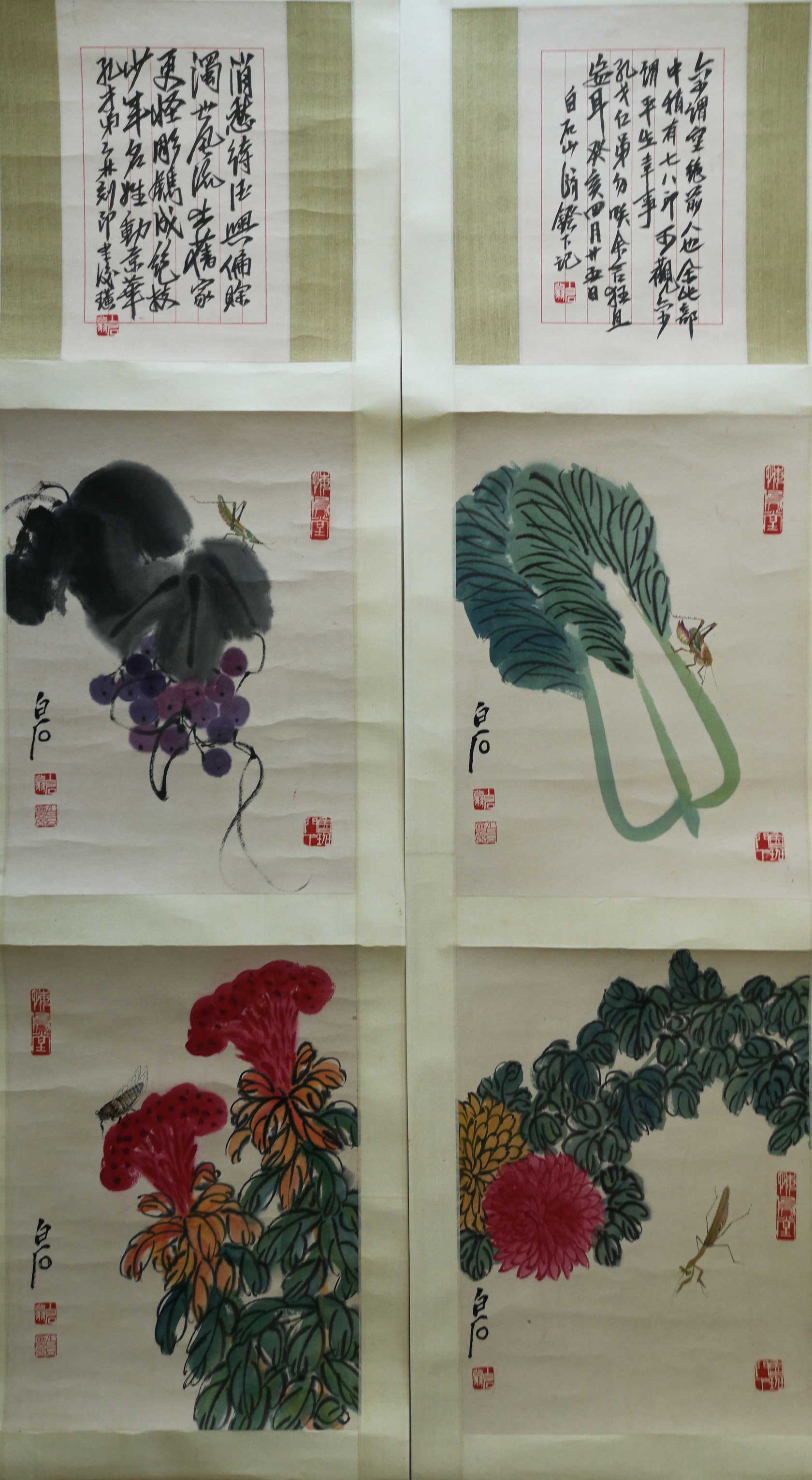 279 齐白石书画双挖四条屏,与贺孔才艺文交往的见证! 众所周知,在近代中国美术史上齐白石是“诗书画印”俱佳的巨匠。他擅画花鸟、水族、山水、人物等多种题材,其大写意造诣很高,但他也擅长精细一路,特别是其工笔草虫花卉画代表了他花鸟画的最高成就,不仅草虫种类繁.. 2024-10-19 08:21
