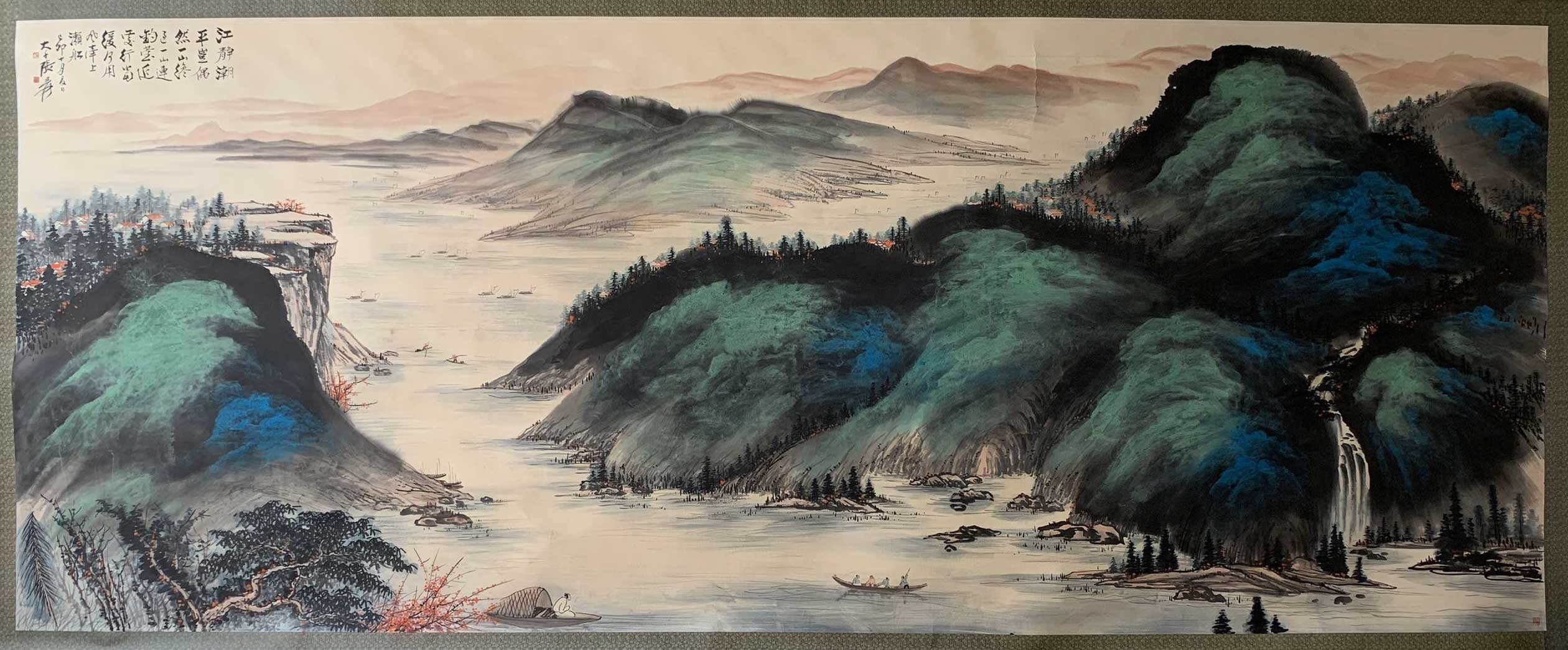 414 张大千丈六泼彩巨制《江静潮平图》,问鼎之作 张大千(1899~1983)于六十年代后期广泛游历,活跃于全球艺术舞台,广阔的国际视野激发出无限的灵感源泉,创作出一生中最震撼寰宇的泼墨泼彩作品。画风工写结合,重彩、水墨融为壹体,开创了泼墨泼彩的新风格。下面.. 2024-08-13 08:19