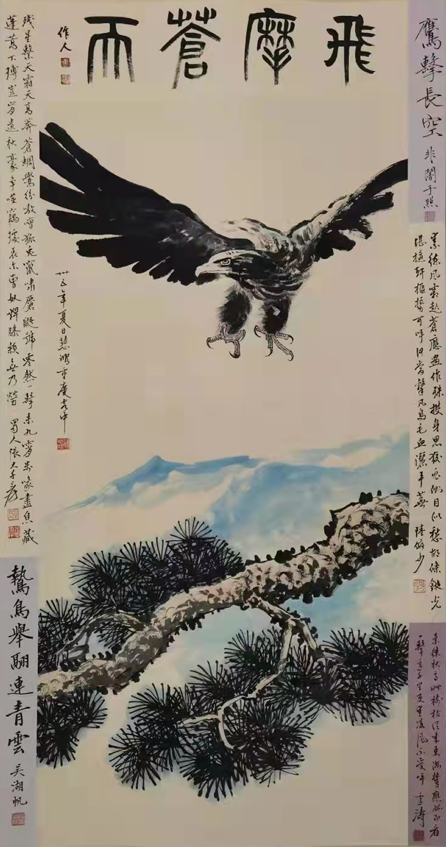 526 徐悲鸿作品《松鹰图》,众多名家题跋 在中国画中,自古以来鹰是画家钟爱的创作题材,因为鹰具有刚健强悍、翱翔搏击、神态威猛、器宇轩昂的风采和高远博大的精神境界。近代画鹰大家有徐悲鸿(1895~1953)、潘天寿及李苦禅等人。下面从庋藏多年徐氏数百件.. 2024-08-13 08:14