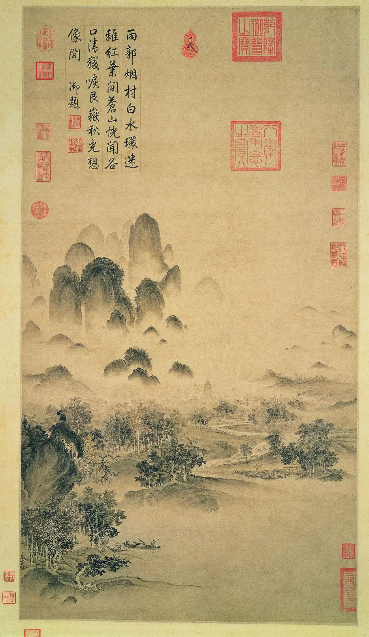 885 赵佶《溪山秋色图》欣赏 《溪山秋色图》是北宋画家赵佶所画的一幅中国画。现藏于台北故宫博物院。这幅画作的构图极具匠心。图中描绘的烟岚雾气迷漫,群峰隐现其间,溪水曲环,江面空阔,秋叶杂树点缀在山头坡岸,完全是一派江湖之乐的景象。.. 2024-06-25 08:16