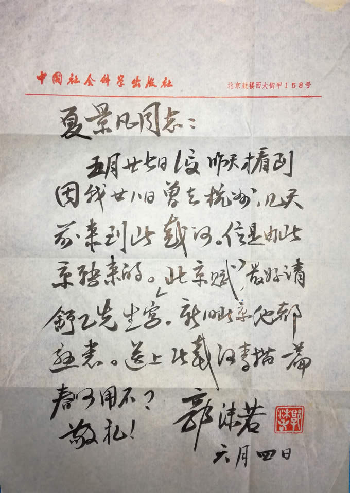 311 郭沫若致夏景凡信札一通一页 郭沫若是二十世纪中国史学史上任何人都无法回避、无法抹煞的人物。像他这样在历史学、考古学、古文字学、古器物学、文学、艺术等方面都有很高造诣的学者,二十世纪中国史上没有几人,二十世纪以前亦不多见。下面为本.. 2024-06-04 08:18
