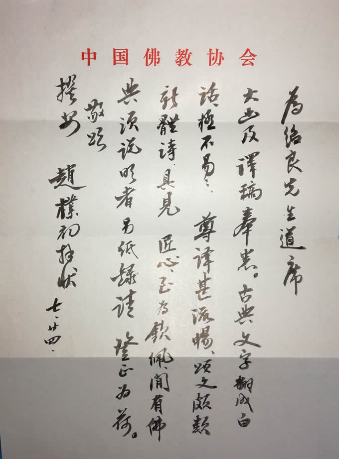 307 赵朴初信札一通一页 最近几年,赵朴初的字画价格一直在上升,尽管其书法风格变化不大,但基础扎实。赵朴初的影响遍及海内外,尤以宗教家为甚。他的书法以行楷书擅长,脱胎于李北海、苏东坡,字的体势向右上方倾斜,结构严谨,笔力劲健而.. 2024-06-04 08:14