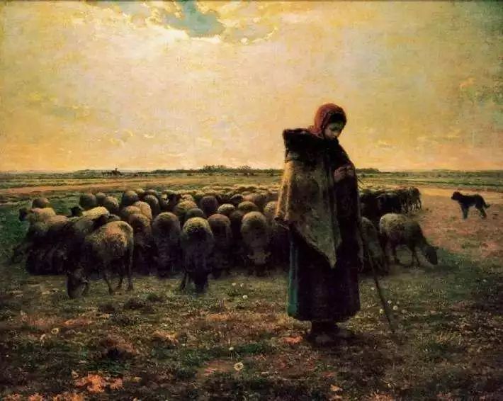 267 米勒名画《牧羊女与羊群》欣赏 在这幅画中,画家捕捉了一个十分抒情的牧羊生活场面:高高的地平线,平坦与辽阔无垠,牧羊女披着旧毛毡披肩,围着红头巾,孤独地与羊群为伴……这个头上包着暗红色绣花毧帽,身上披着厚重毛毡的牧羊女,背对着羊群与.. 2024-10-06 08:24
