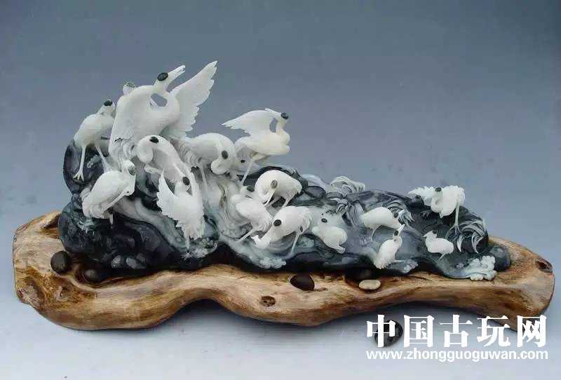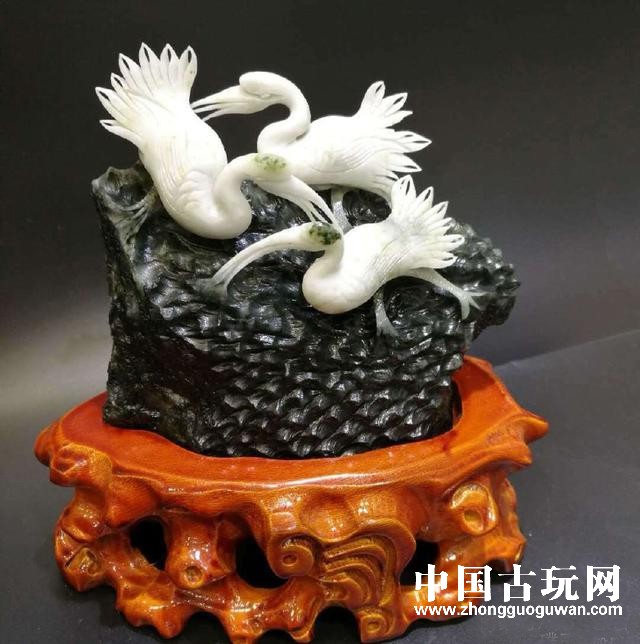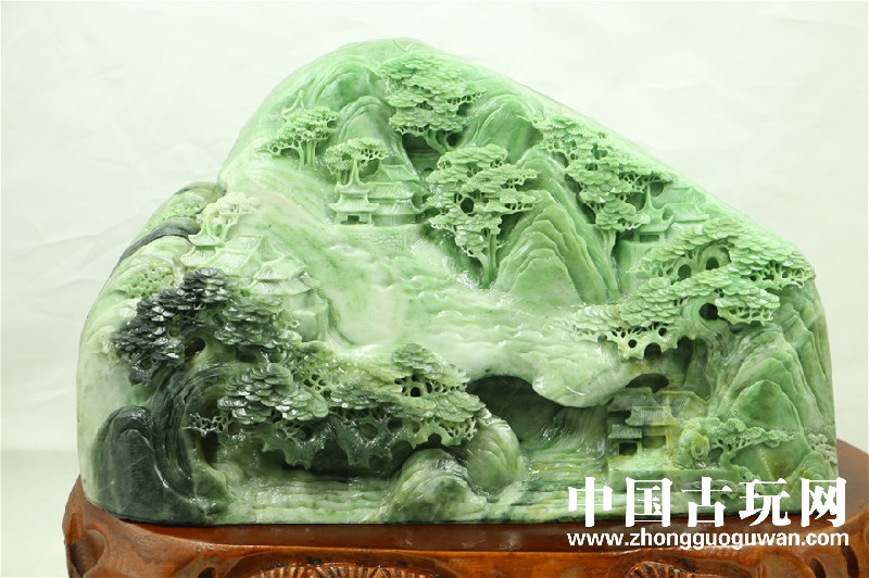 3.白独山玉:总体为白色、乳白色,常为半透明至微透明或不透明,依据透明度和质地的不同又有透水白、油白、干白三种称谓,其中以透水白为最佳,最具有收藏投资价值。白独山玉约占整个独山玉产量的10%。