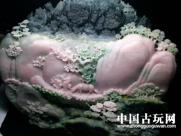 2.红独山玉:常表现为粉红色或芙蓉色,又称"芙蓉玉"。这类玉石通常颜色深浅不一,看上去一般为微透明至不透明,与白独山玉呈过渡关系。由于此类玉石的产量较少,所以此种玉石也是收藏者选择的上品之一。