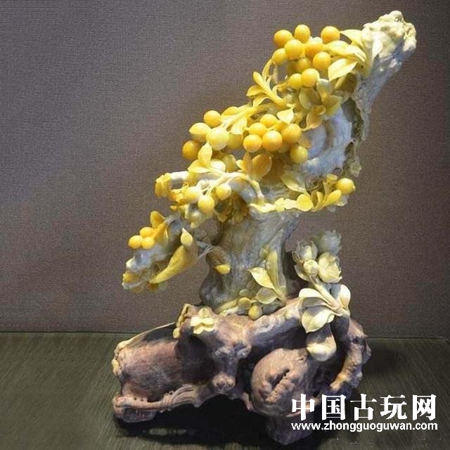 4.黄独山玉:为不同深度的黄色或褐黄色,常呈半透明分布,其中常常有白色或褐色团块,并与之呈过渡色,具有一定收藏投资价值。