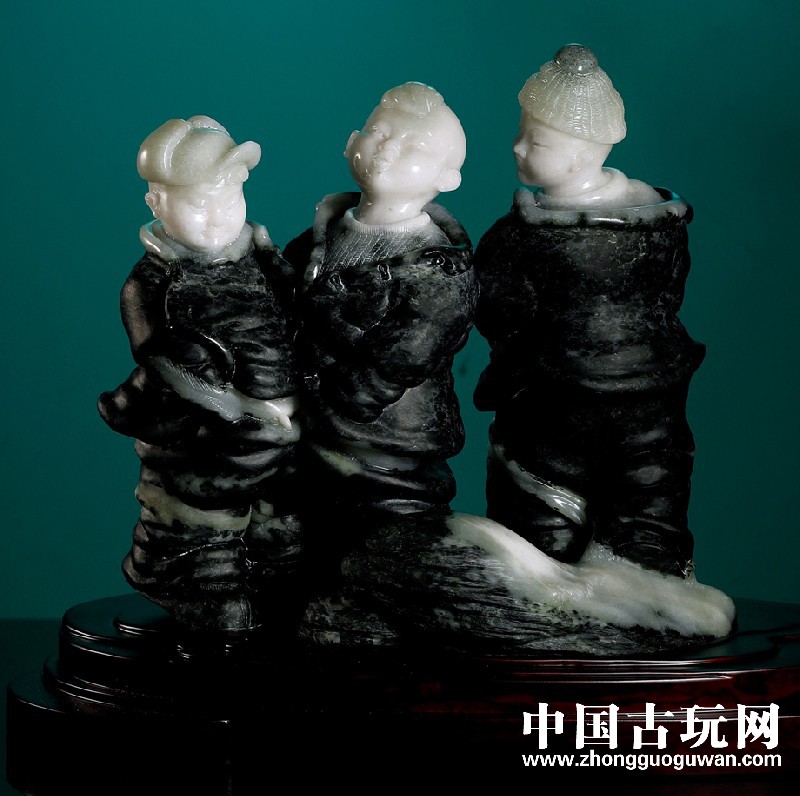 7.黑独山玉:又称独山墨玉,黑色、墨绿色,不透明,颗粒较粗大,常为块状,团块状或点状,与白独山玉相伴,该品种为独山玉中最差的品种,除非是工艺特别好,否则没有太大的收藏价值。