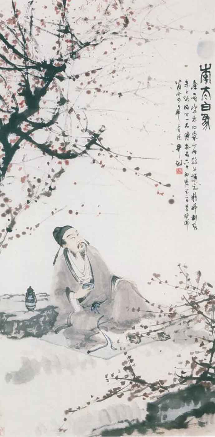 傅抱石对杜甫形象的刻画亦与他对历代诗人的推崇合承一脉,如1963年创作的《李太白象》或根据白居易诗意创作的名作《琵琶行》,古代文人雅士的形象在傅抱石肆意徜徉的笔墨下表现的淋漓尽致。