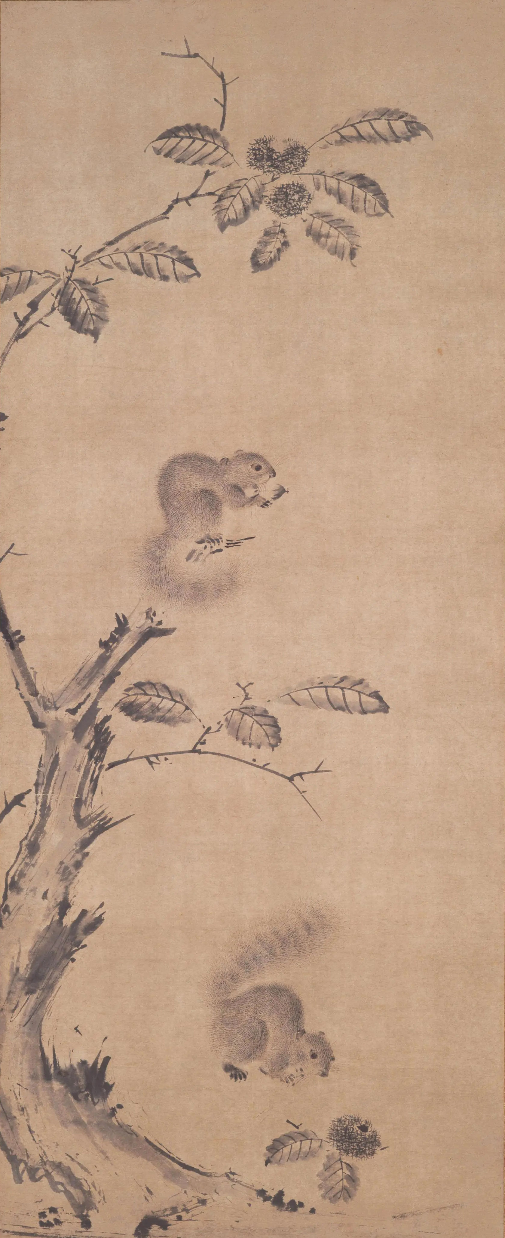 △葛叔英 《松鼠戏果图》97×39.4cm