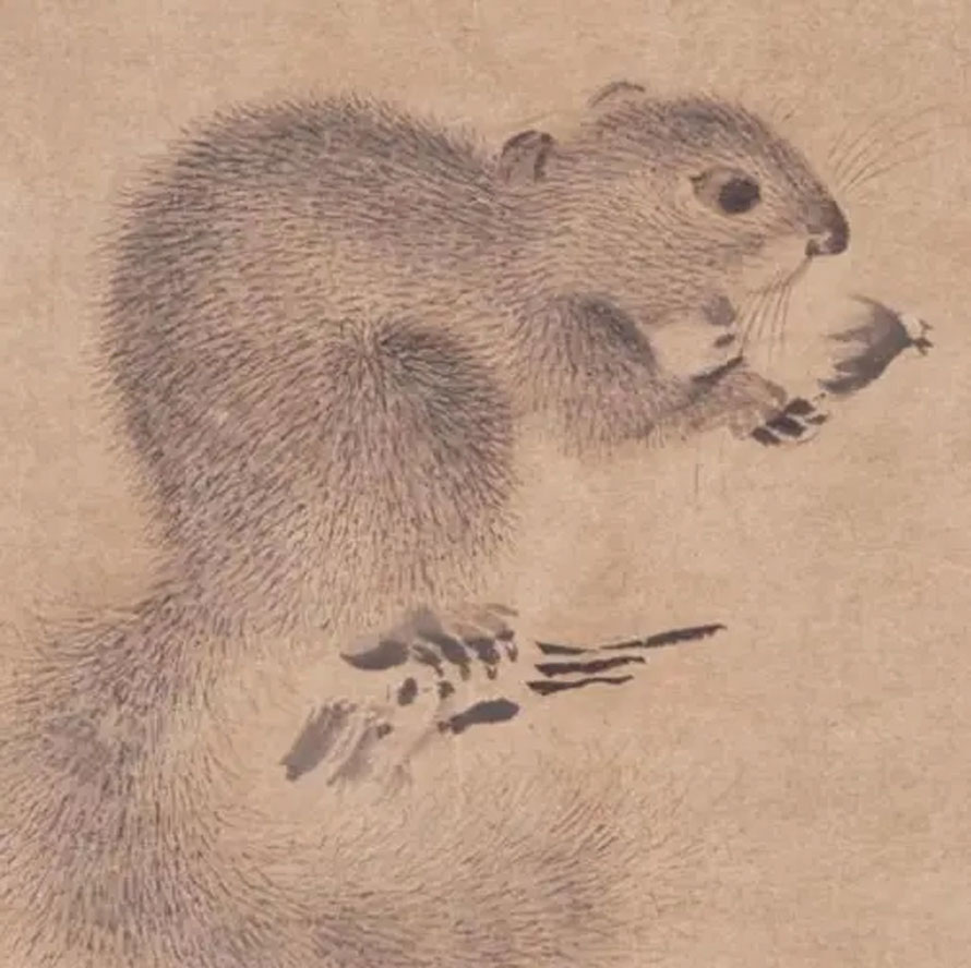 《松鼠戏果图》是元代画家葛叔英所画的一幅中国画。这幅画的画面采取了典型的“s”形构图,这种构图方式使得画面显得婉转流动,同时也凸显了画面的深度。画面中层次感十足,既有一只松鼠,又有树叶、树枝和果实,这种布局使得画面层次分明,主题突出。此外,这幅画的色彩运用也非常出色,画面以暖色调为主,给人一种温馨、祥和的感觉。松鼠的毛发色彩过渡自然,从深灰到浅灰,表现出毛发的质感和层次感。