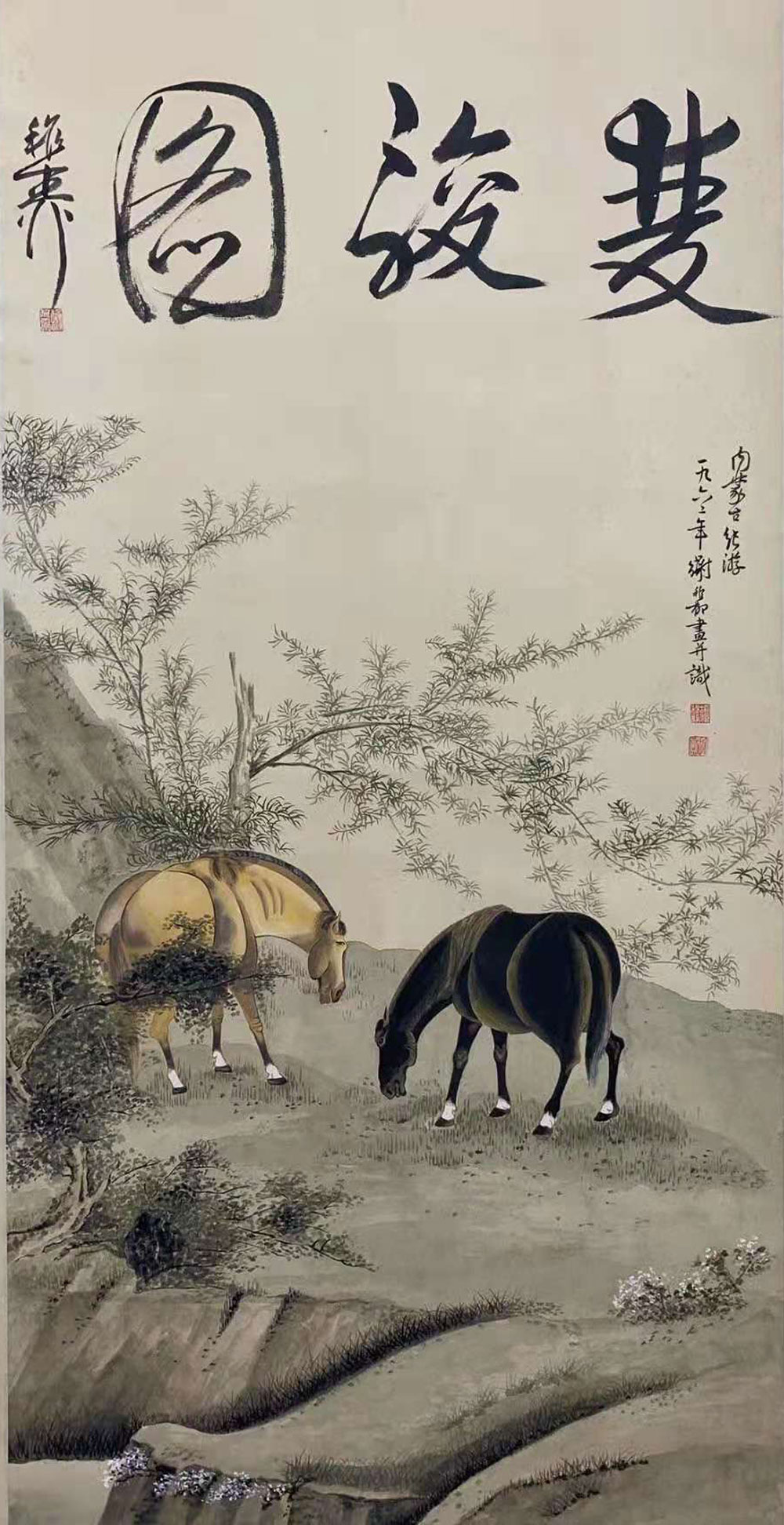 △谢稚柳《双骏图》中堂