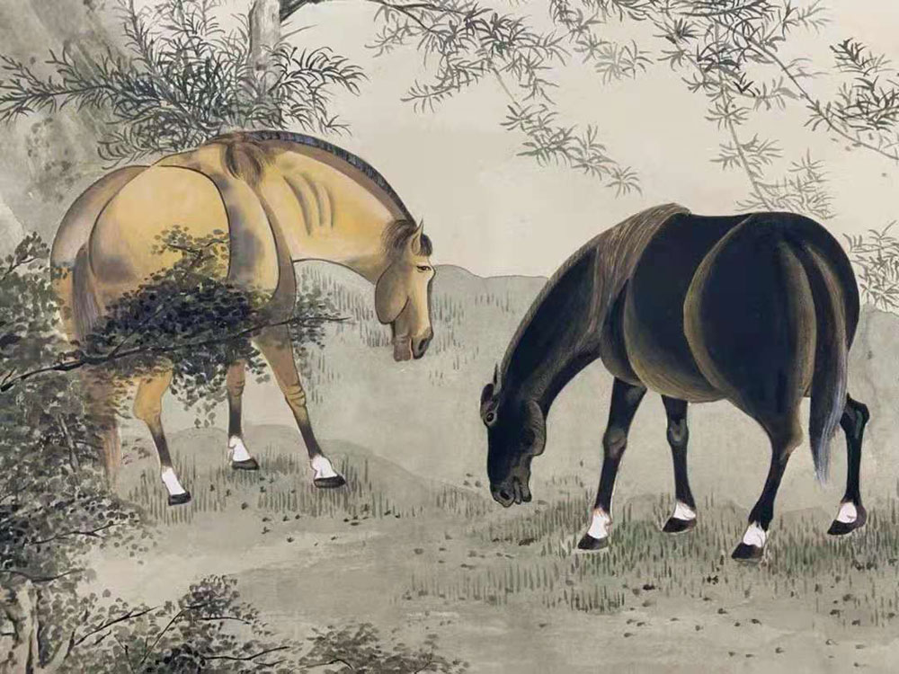 △谢稚柳《双骏图》中堂局部-3