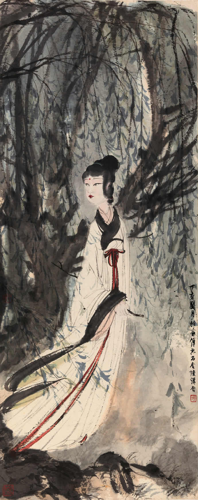 ▲ 傅抱石 《柳荫仕女》