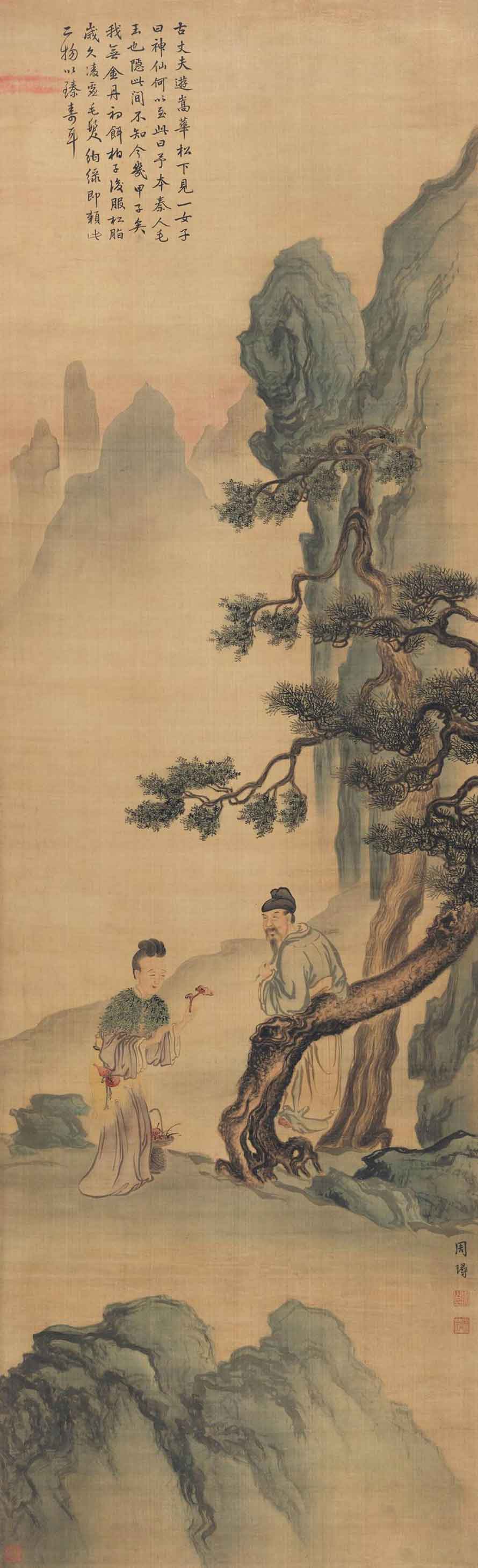 周璕《嵩华毛玉图》,创作年代:不详,规格:194×59cm,材质:绢本设色