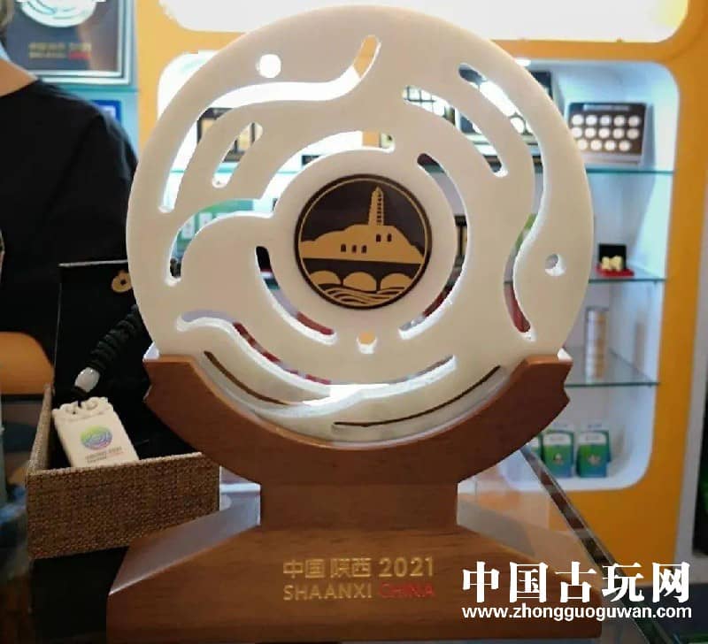 在这次全运会(特许商品)的筹备工作中,我们首推了12件蓝田玉礼品,其中9款获得了全运会特许商品运营设计权。现在我所展示的这一款是以"秦岭四宝"为主题的蓝田玉礼品,所有的吉祥物全部都使用蓝田玉"09"矿的玉质雕刻而成,其中我们可以看到"秦岭四宝"朱鹮、大熊猫、羚牛、金丝猴的形象代表着幸福快乐、积极向上的寓意,同时也代表着将陕西绿色环保发展理念贯穿于大会始末。