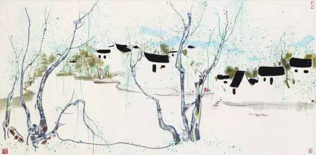 吴冠中是学贯中西的艺术大师,也是中国当代硕果仅存的艺术大师和文学巨匠。他在油画、水墨、彩墨、速写及艺术理论和文学创作等方面均造诣卓著。他的水墨画是他心中江南城镇的写照,若将他的作品加以提炼,我们可以感觉到常有某些共通之处民俗气味。这就是那些斑斓彩点激发起来的中国农村生活中的情调。