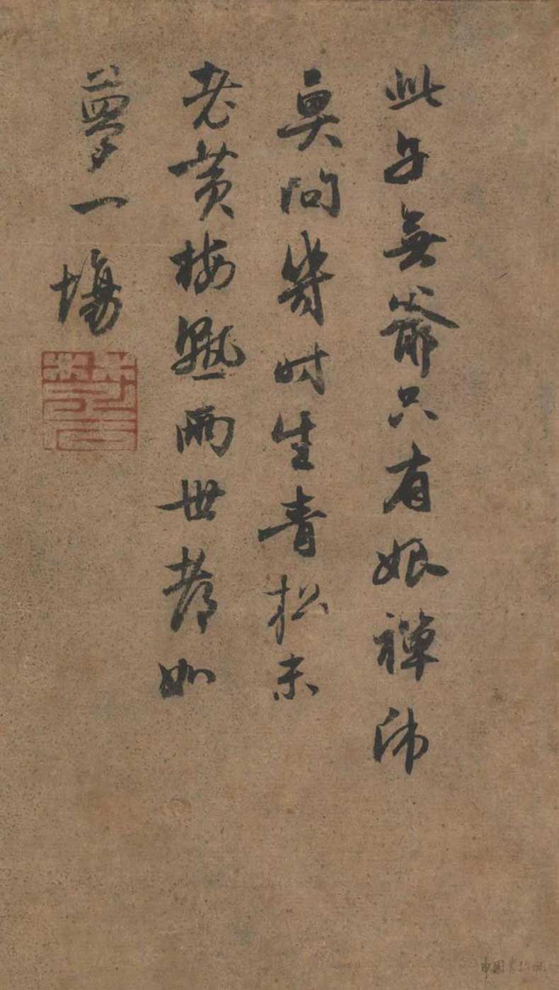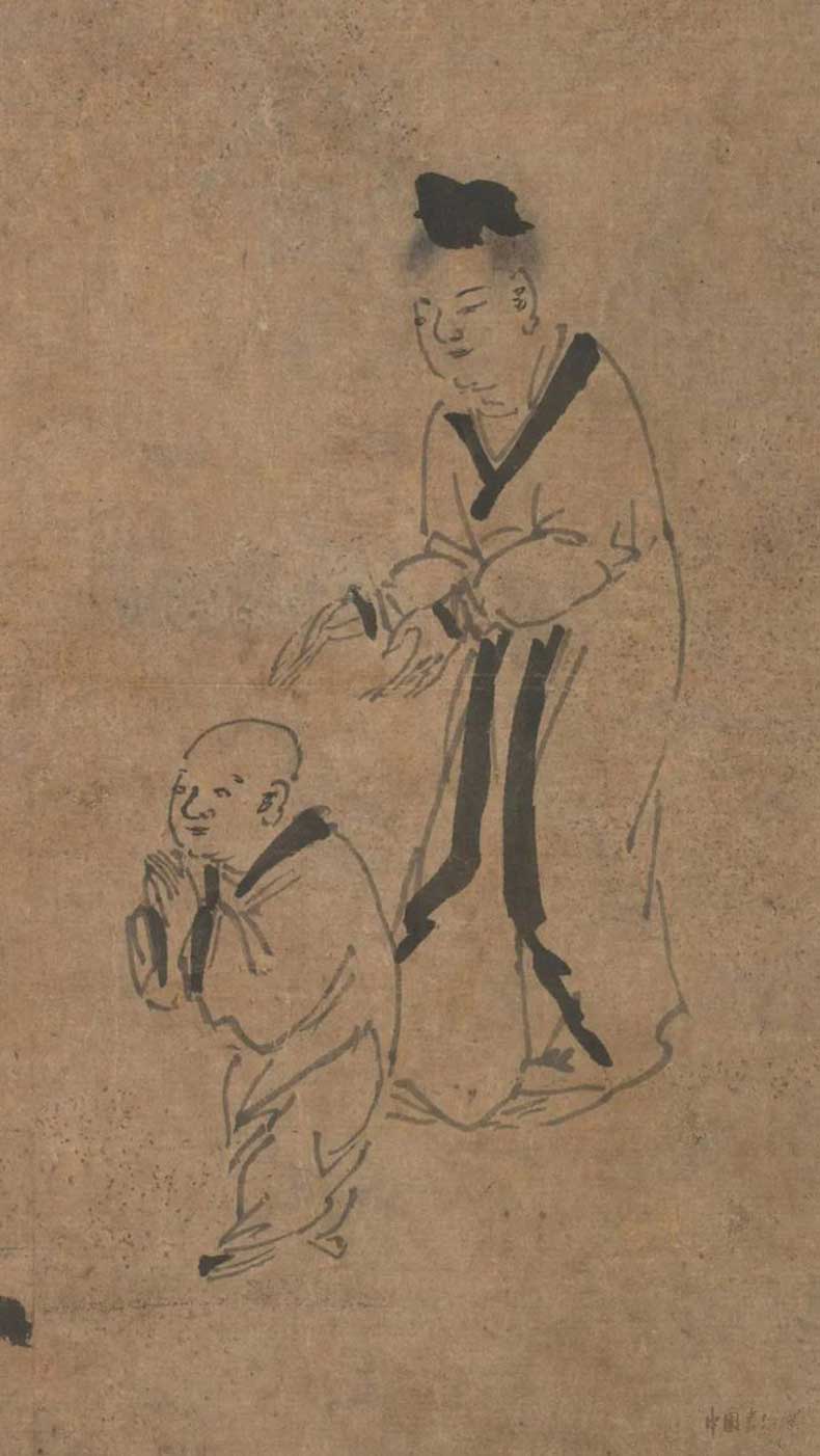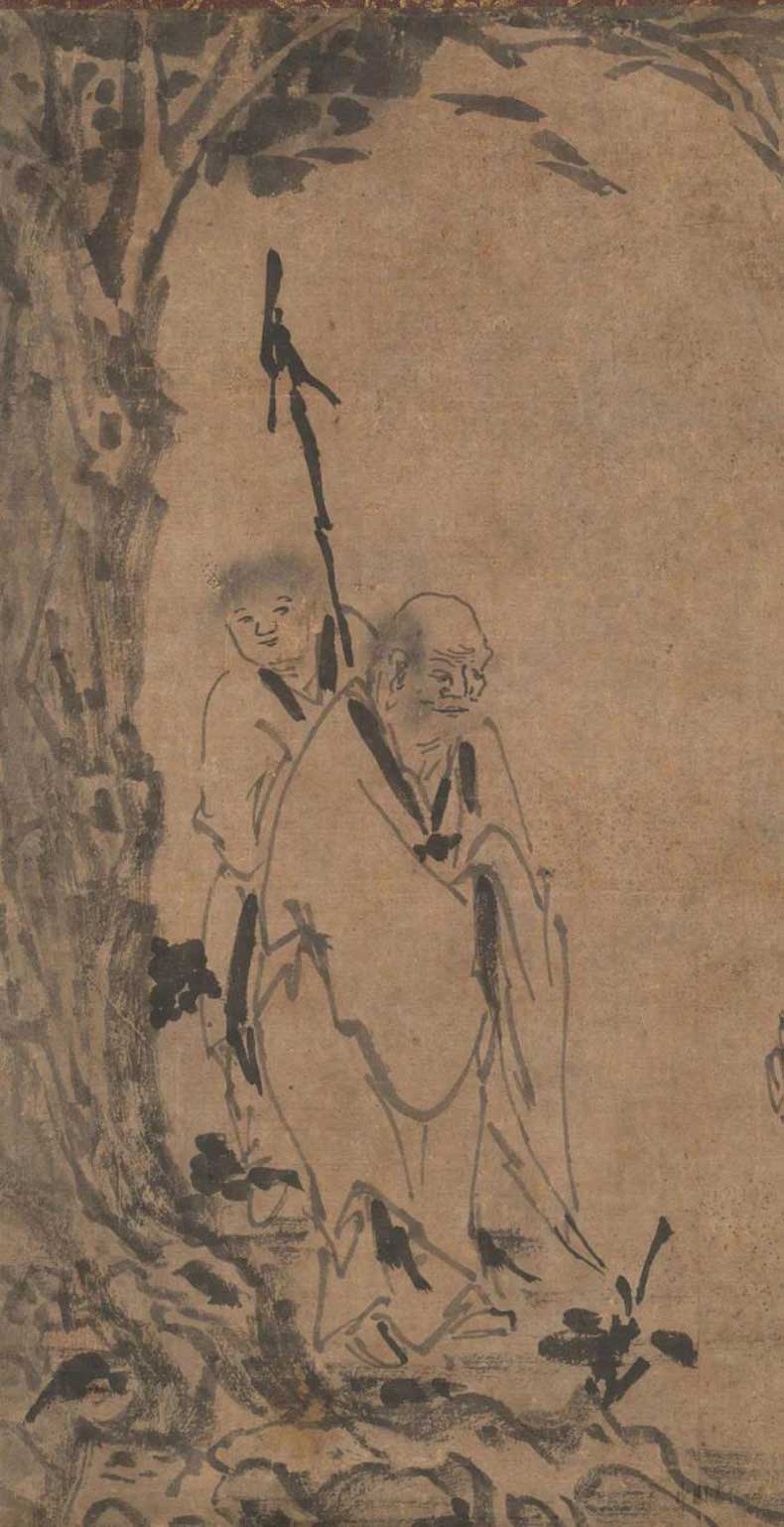 元因陀罗《五祖再来图》纸本立轴。水墨32.744.6厘米。克利夫兰艺术博物馆。