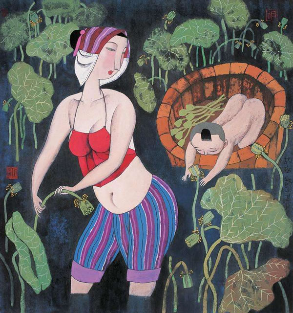 胡永凯在八十年代后期创作的以描绘水乡风情为主的《民俗系列》,有着与“新文人画”相似的取向,即对中国传统文化的回望,但不是明清文人主流文化的孤傲与独善,而是充满了对平民生活和江南乡情的深深依恋。