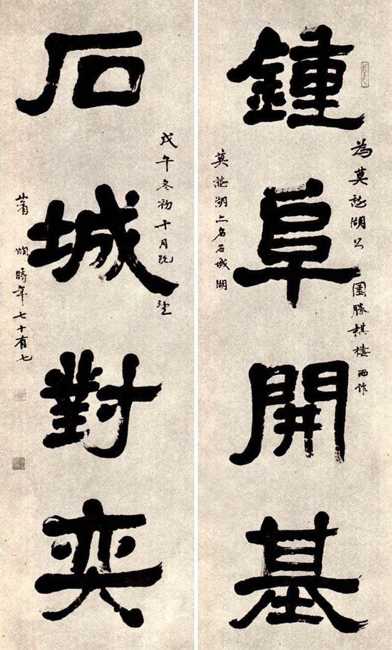 萧娴先生13岁便写得一手好邓隶,曾有“粤海神童”之称。萧娴青年时代好交游,善饮、胆大,为人落拓不羁。20岁时,萧娴经朋友介绍去上海拜见康有为先生。康先生见到萧娴13岁时所书《散氏盘》铭文后,欣然赠诗云:“笄女萧娴写散盘,雄深苍浑此才难;应惊长老咸避舍,卫管重来主坫坛。”萧娴此时正式拜康有为为师,深得康有为法乳。康有为竭力倡导碑学,在实践上忠实地把他的理论化为累累创作果实的,萧娴是一个杰出代表。
