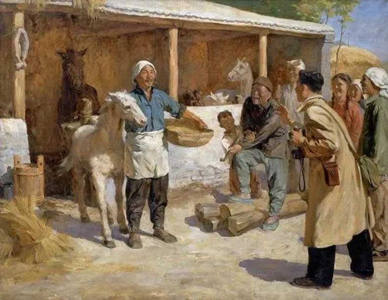 韦启美(1923-2009)。安徽安庆人。韦启美是中国现代美术史上重要的油画家、漫画家和美术教育家,他少小师从孙多慈,临摹《芥子园画谱》,考入中央大学师范学院艺术系,又受业于徐悲鸿、黄显之、吕斯百等人,与李斛、戴泽、宗其香等人同窗。他们服膺徐先生融合中西艺术之求索,成为了兼具中西全面修养的艺术家,韦启美先后任教于北平艺专和中央美术学院绘画系,在中国近现代美术史中起到承前启后的关键作用。