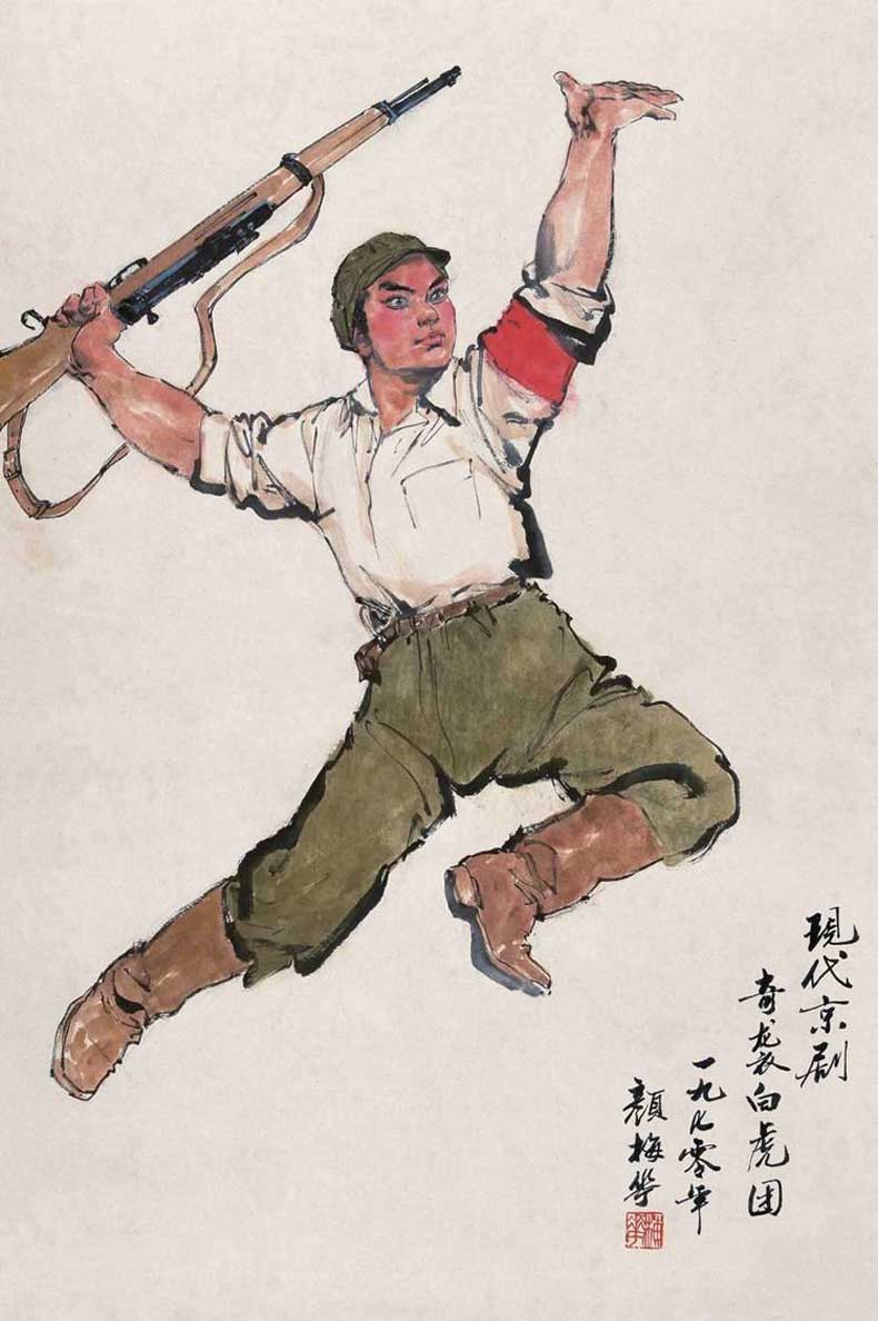 颜梅华(b,1927),著名国画家、连环画家。作品笔墨精到,潇洒脱俗,形神兼备。四十年代中期主要从事连环画创作,尤其擅长武侠剑客和古典等题材,被誉为连环画四小名旦之一。