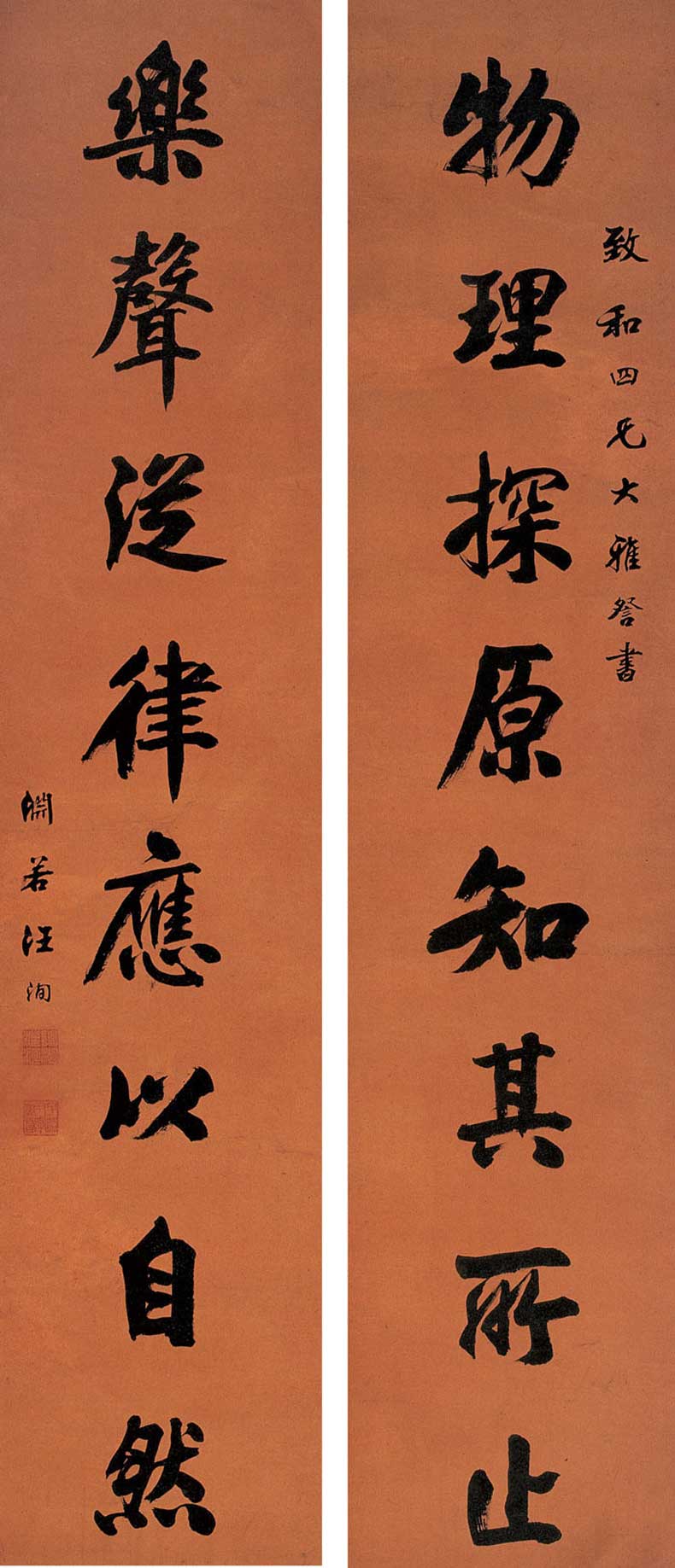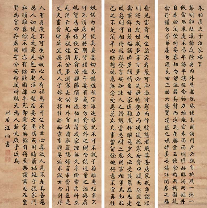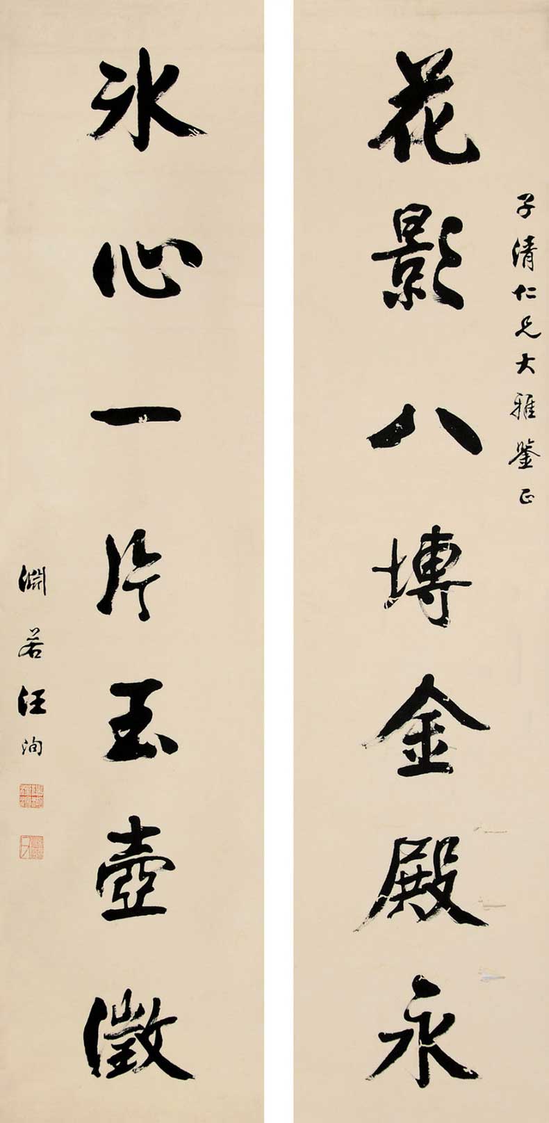汪洵(?-1915),字子渊,号渊若,原名学瀚,字渊若,今江苏常州人。光绪十八年进士,授编修。书法摹颜真卿,得其神骨,又参以他帖而变化之,工力甚深。兼精篆、隶,古朴。尤工小篆。少时喜刻印,非旧友不知。工花卉、草虫,秀逸可爱,惟不轻动笔,鲜有知其能画者,暮年鬻书沪上。