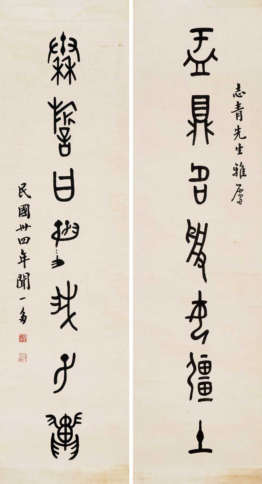△1945年作 篆书七言联