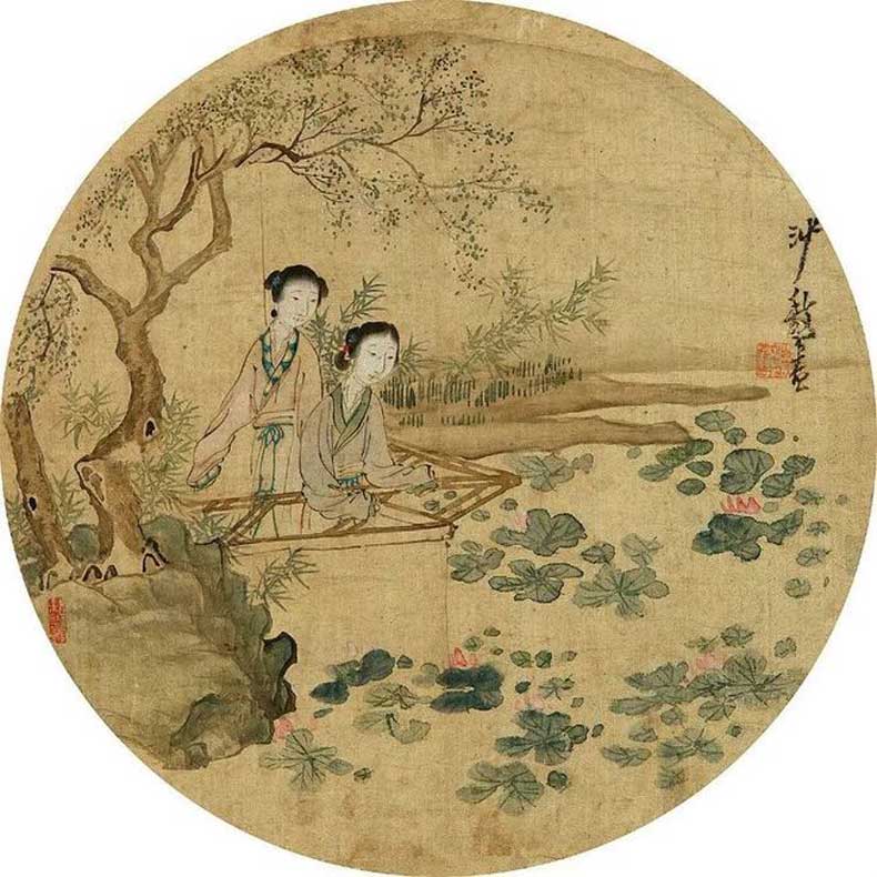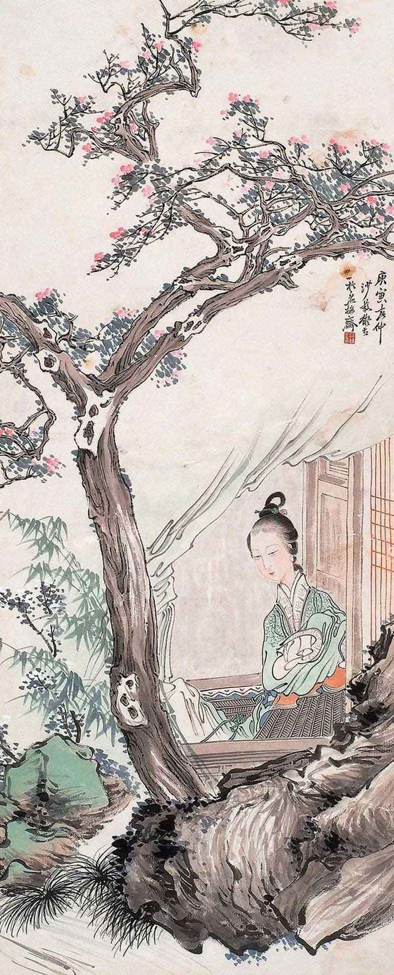 沙馥(1831~1906),字山春,号香溪渔隐,江苏苏州人。人物花鸟皆精妙,有名于时。为近代六十名家之一。沙馥初慕陈老莲。咸丰间任熊至吴门,曾问业于任熊。任熊去世后,又与任薰关系甚密。后因自愧画学不如任薰雄伟恣肆,遂弃老莲法,转学改琦、费丹旭,并专攻仕女、花卉,遂自成一家。沙馥画学甚深,笔致妍秀,所作人物及花卉,无不精妙。