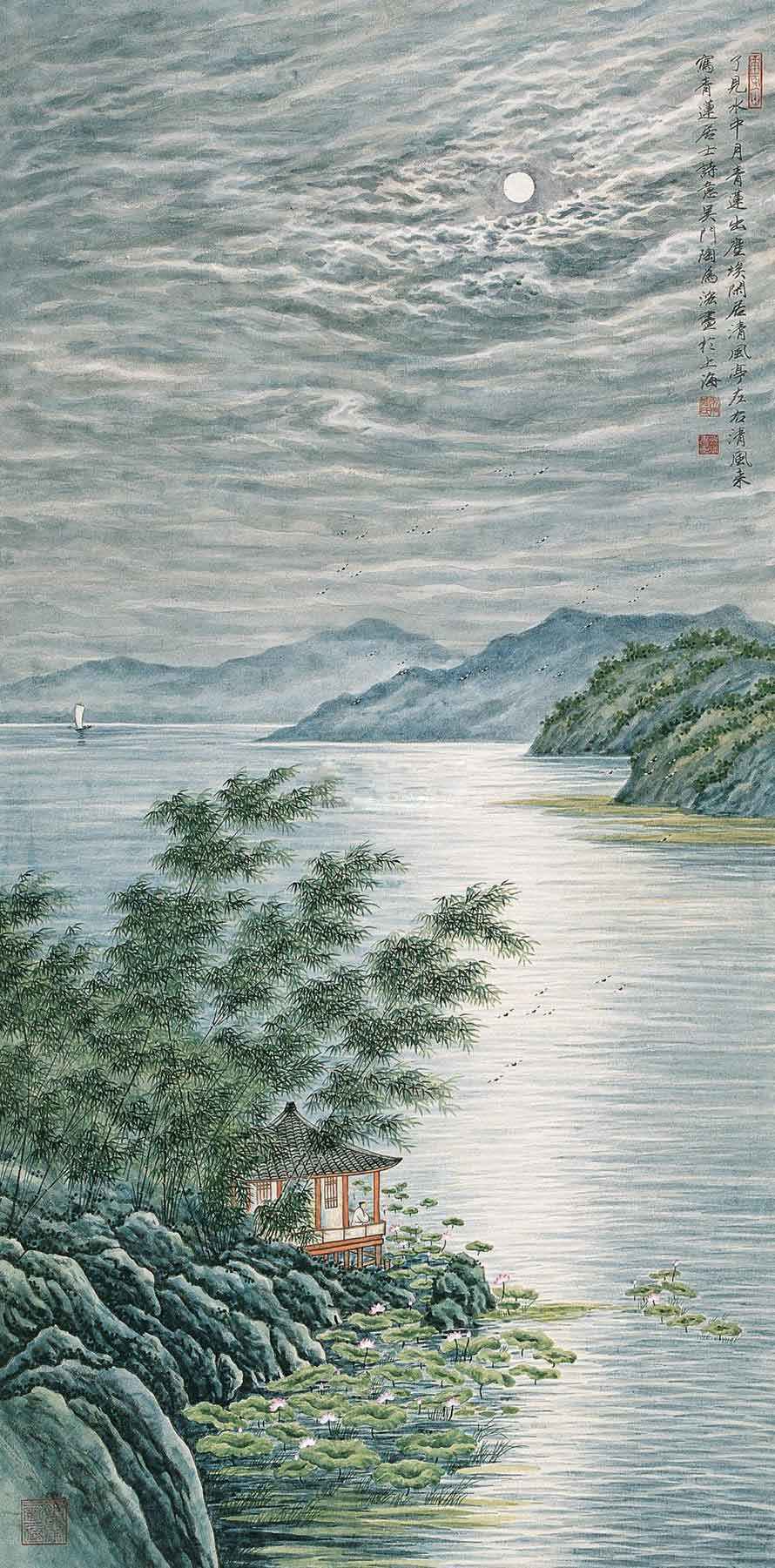 △秋江皓月图