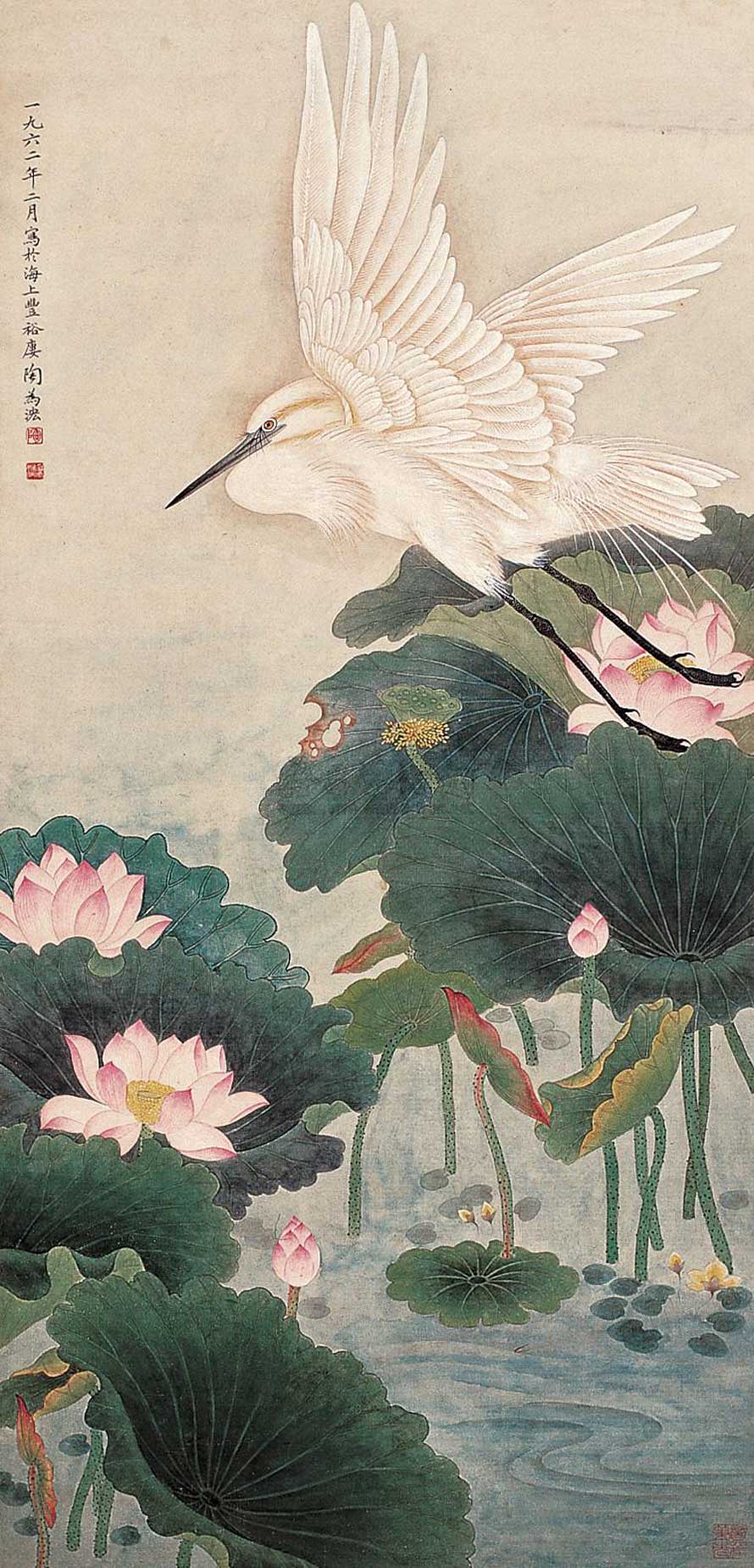 △荷塘飞鹭图
