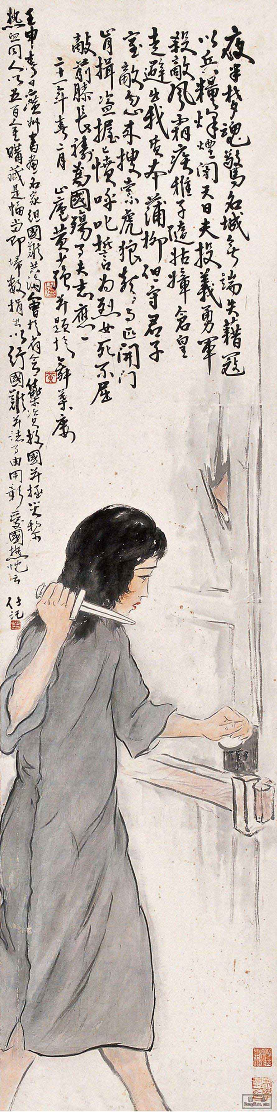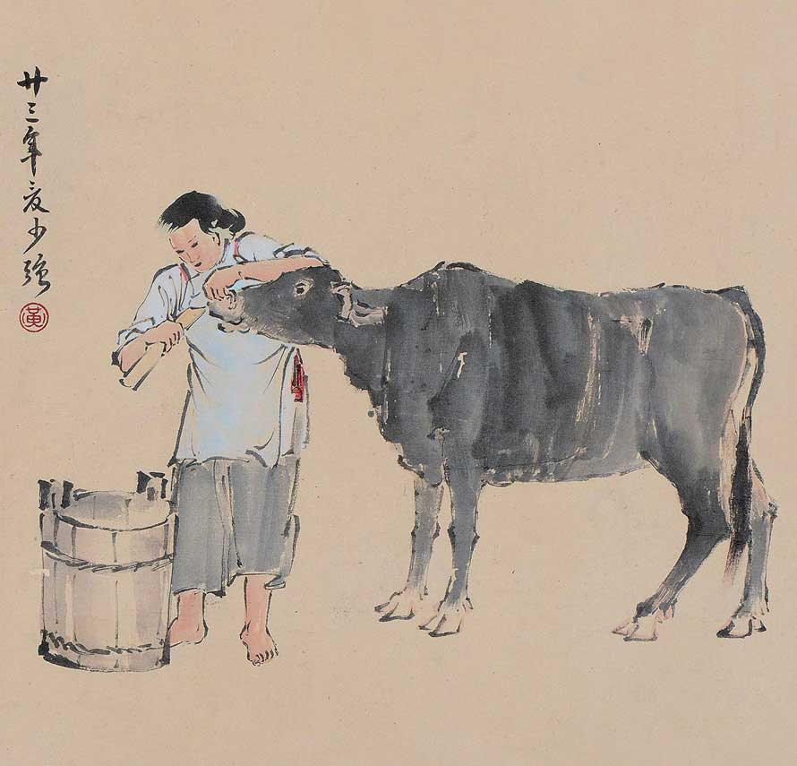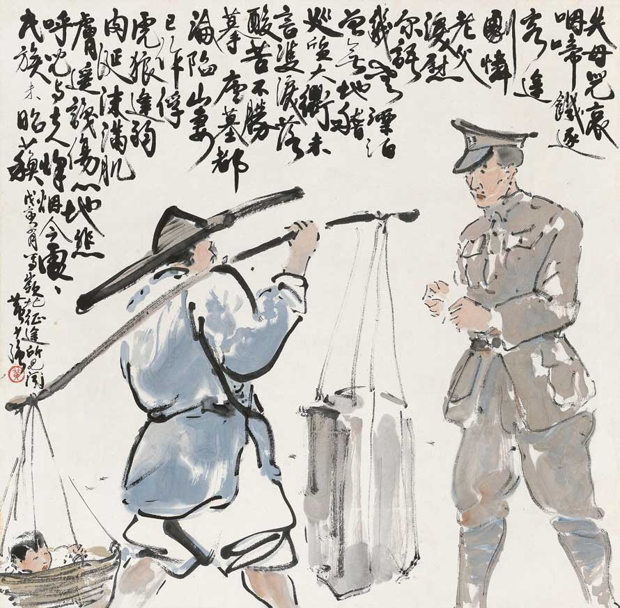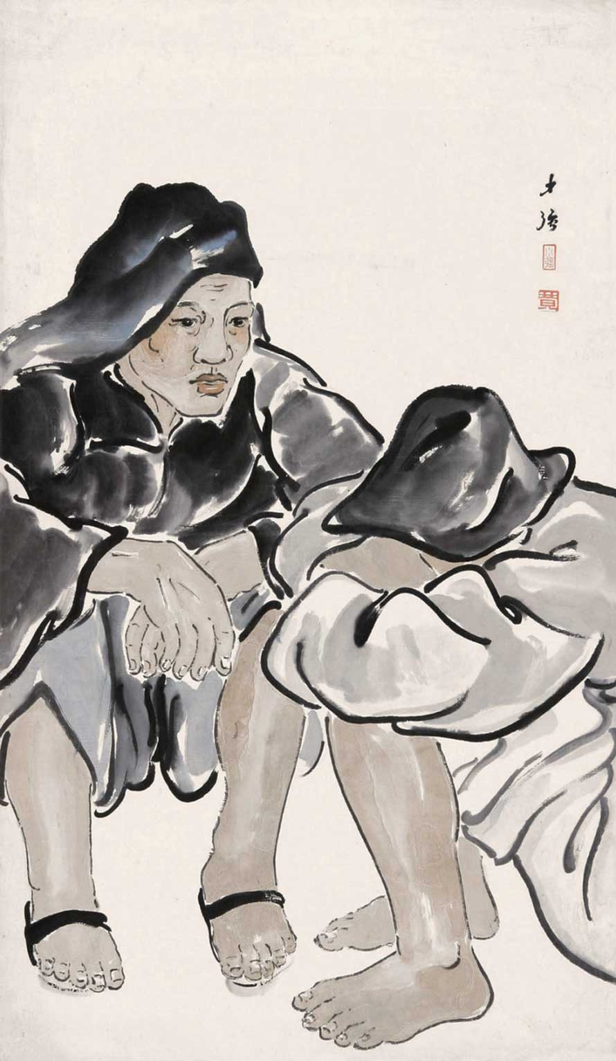 黄少强(1901~1942),名宜仕,晚号止翁、止庐,以字行,广东南海人,广州市立美专国画教授兼国画系主任。曾师从刘海粟、高剑父、高奇峯学画,在广州创办民间画馆。初攻西洋画,自入高氏美学馆后,努力写生,用西洋画技术从事国画绘制,以“法古变今”为其写画教条。作品取材于民间疾苦,因之人物画较多,在岭南折衷派画中别树一帜。所选题材多农民、工匠、病弱妇女等,是30年代以传统写意画法描绘平民生活的突出代表。