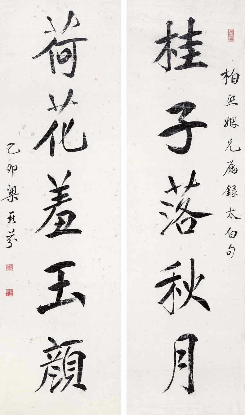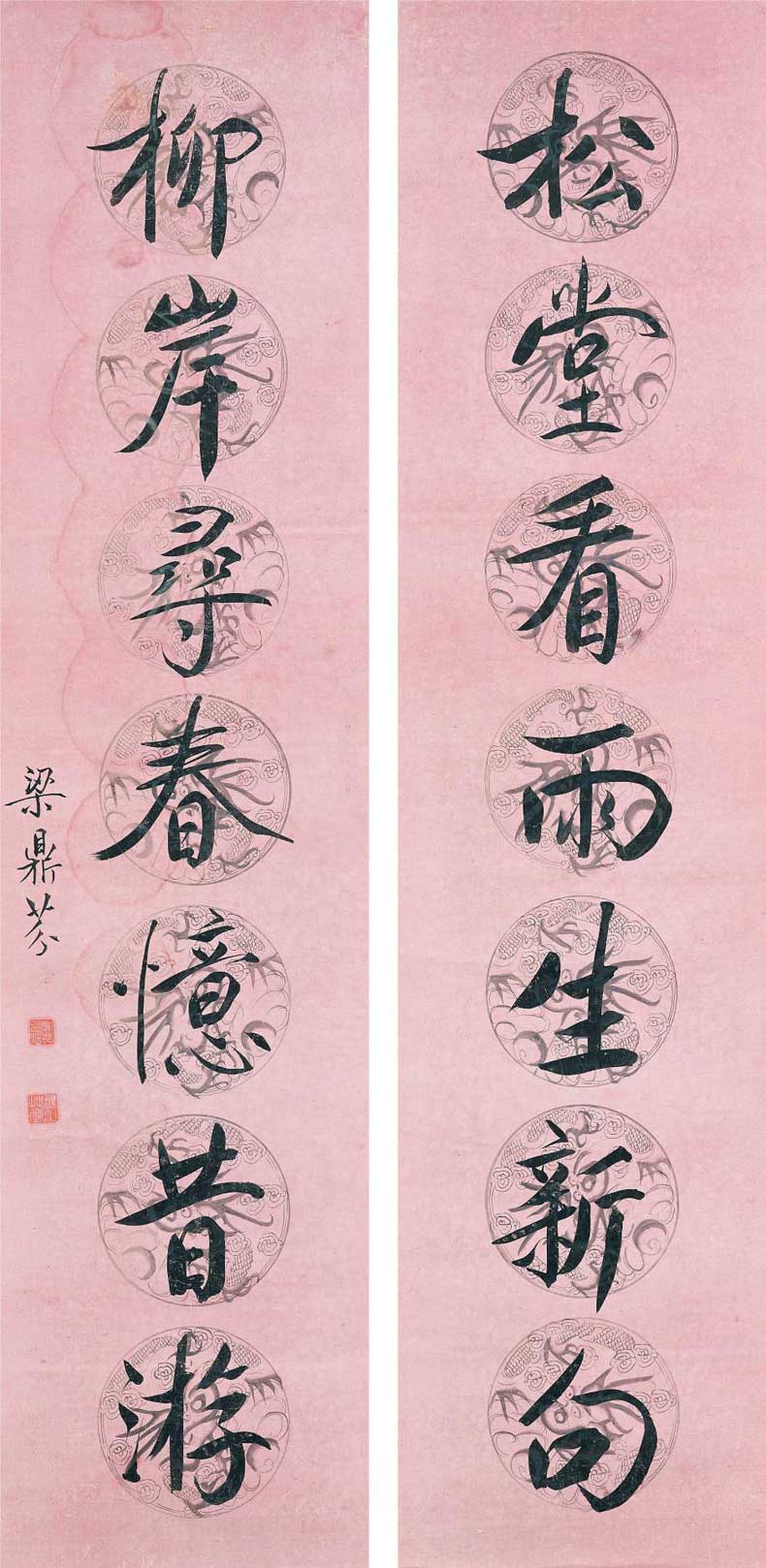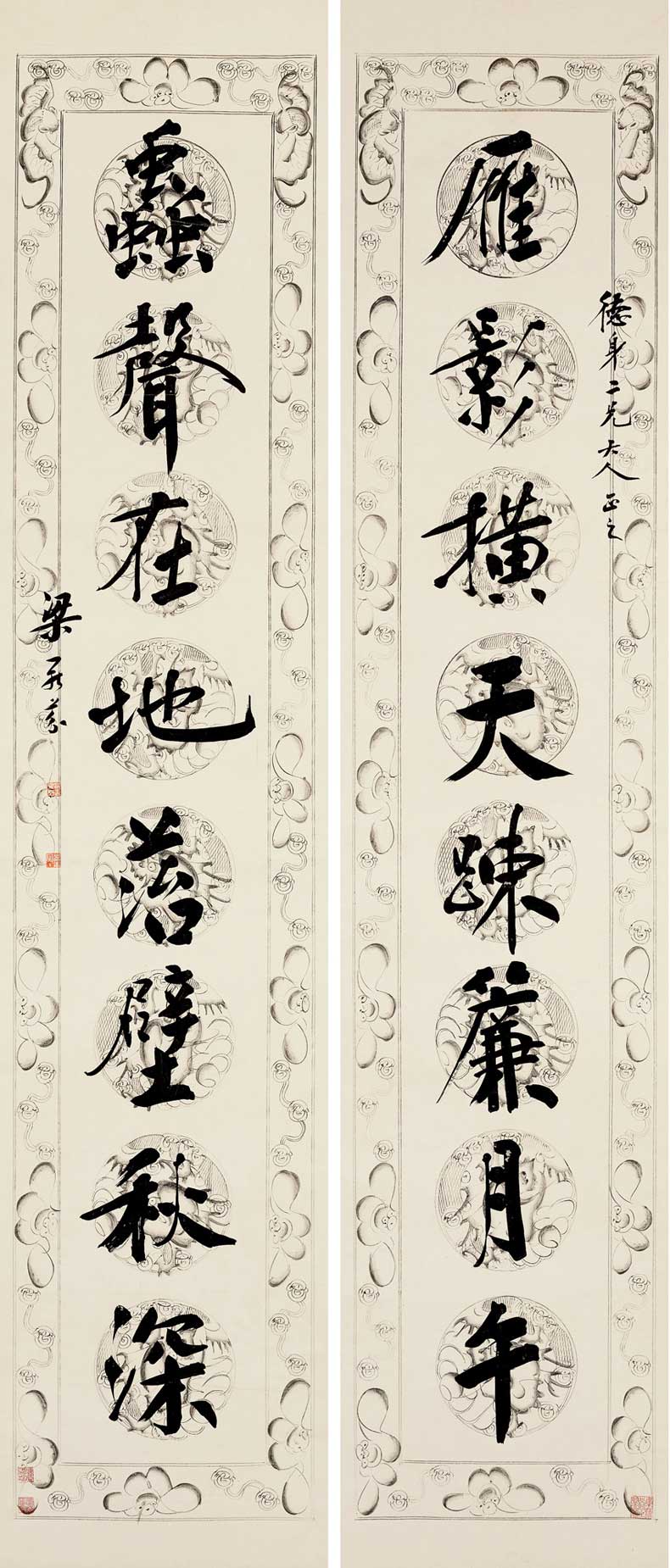 梁鼎芬(1859~1920),字星海、心海、伯烈,号节庵,广东番禺人。光绪六年进士,授编修,官至湖北按察使。后为溥仪师傅。工诗,善书瘦金体。曾为溥仪老师。梁鼎芬书法初学柳公权、饶爽健刚劲之气。中年后兼取法黄山谷、褚登善,细筋入骨,撇捺加长,笔道细而劲,极富创造性,风骨棱棱,颇如其人。近代简经纶评介其书法:“秀雅绝伦。”与罗惇曧等人并称“岭南近代四家”。