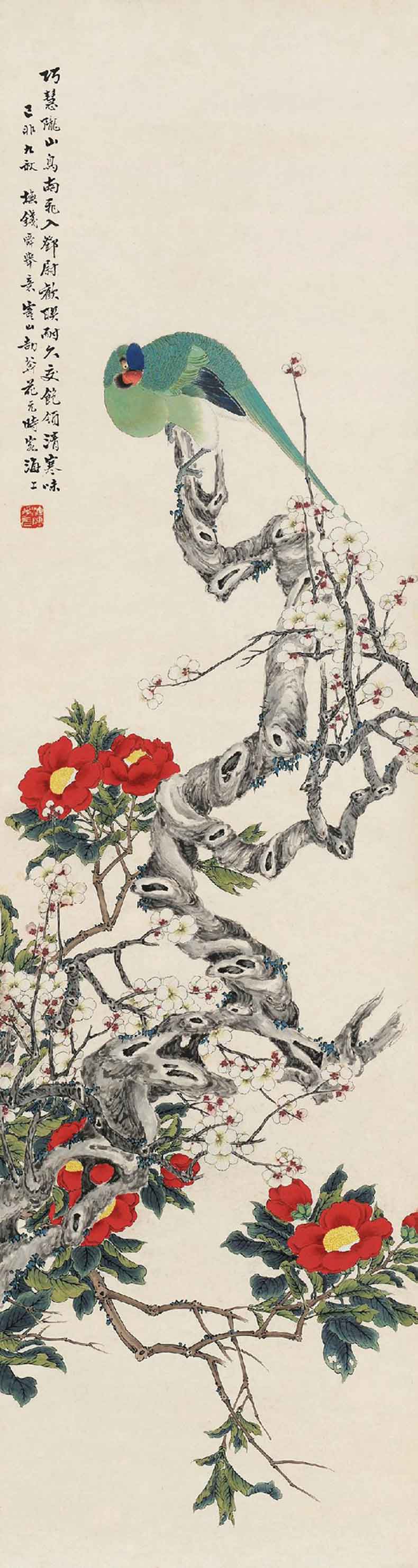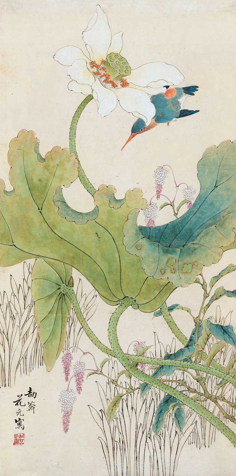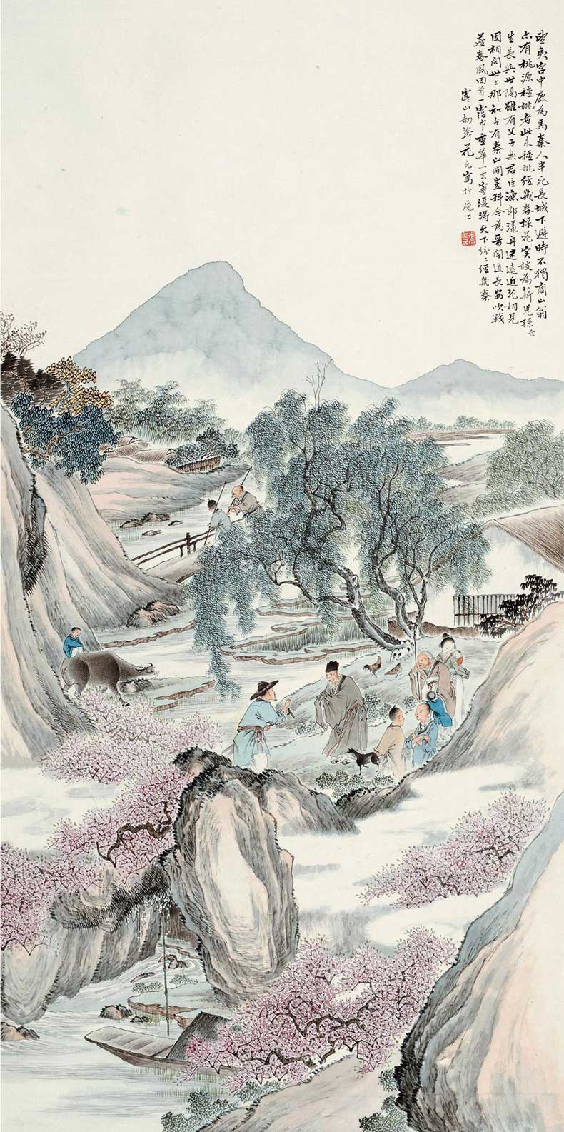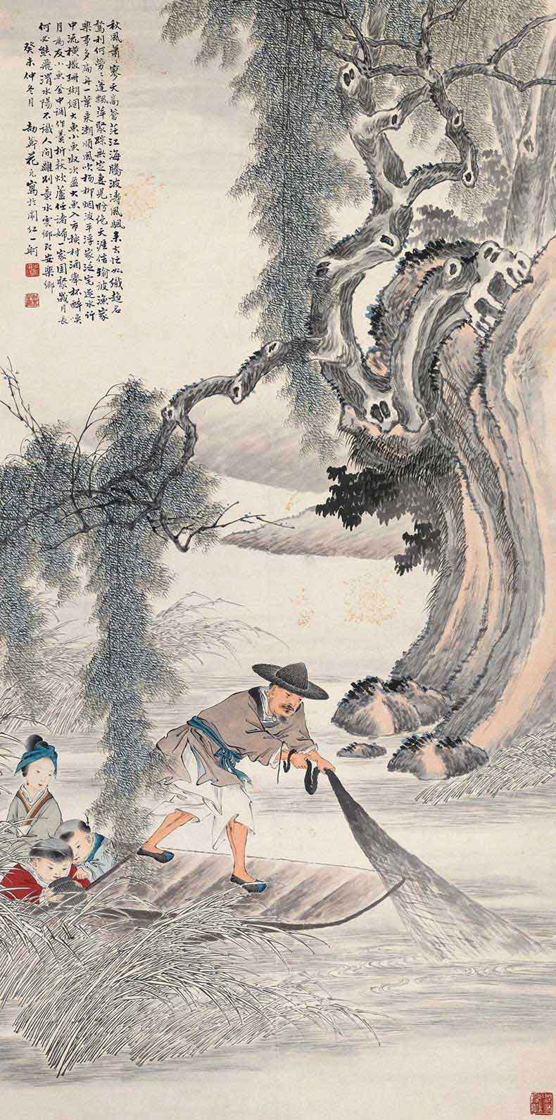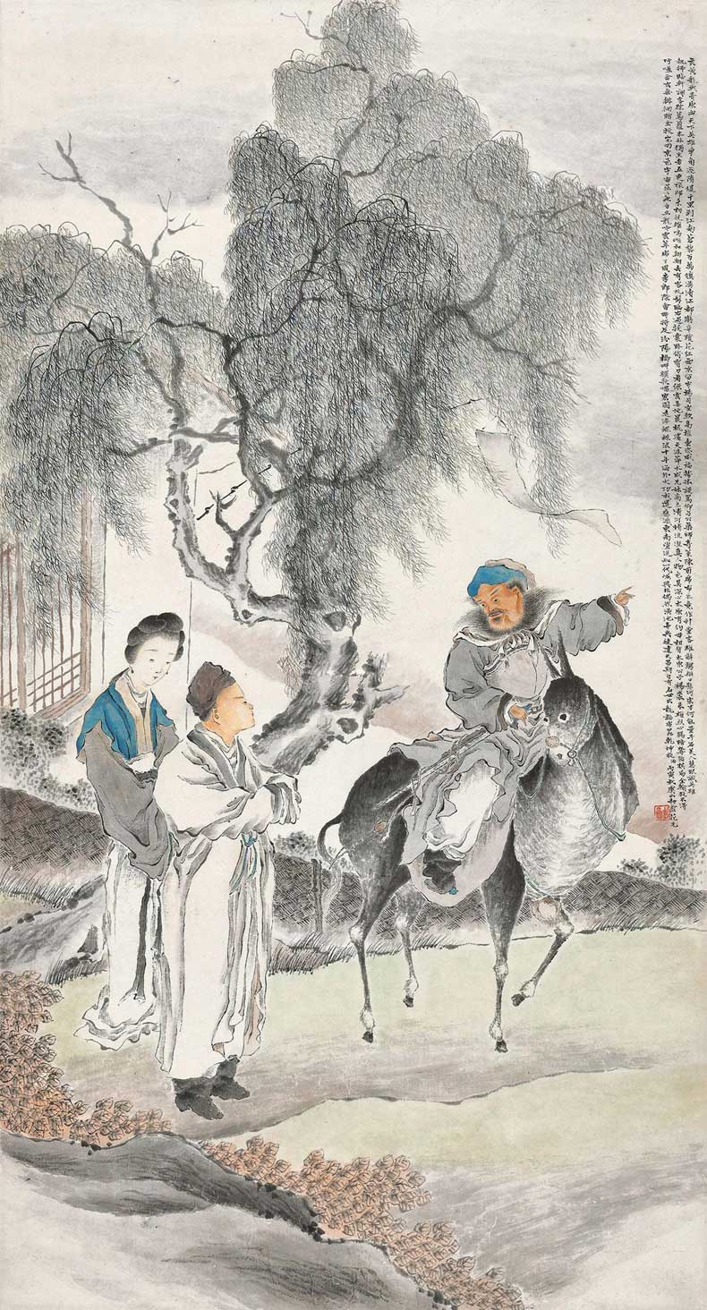 花元(1898~1957),江苏常熟人。号劼庵,寓居上海,善绘人物,合设费兴任伯年于一体,缜密工细,画称能品。山水、人物、花鸟无所不工。笔墨精致,赋色秀雅。与近代海上名家江寒汀并为虞山双杰。